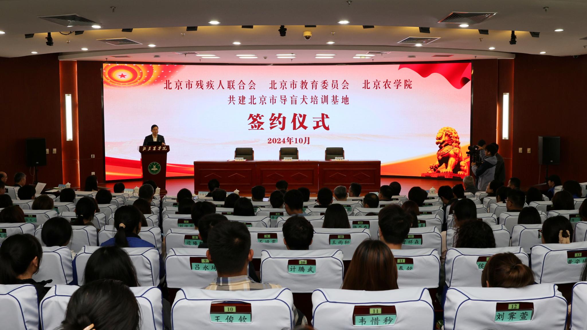 10月31日,北京市残疾人联合会、北京市教育委员会、美加墨世界杯官网共建北京市导盲犬培训基地签约仪式在美加墨世界杯官网举行。北京市残疾人联合会党组书记、理事长陆晓光,北京市委教育工委委员、市教委副主任张耀天,北京市残疾人福利基金会理事长侯玉兰,美加墨世界杯官网党委书记赵锋,党委副书记、院长段留生出席签约仪式。