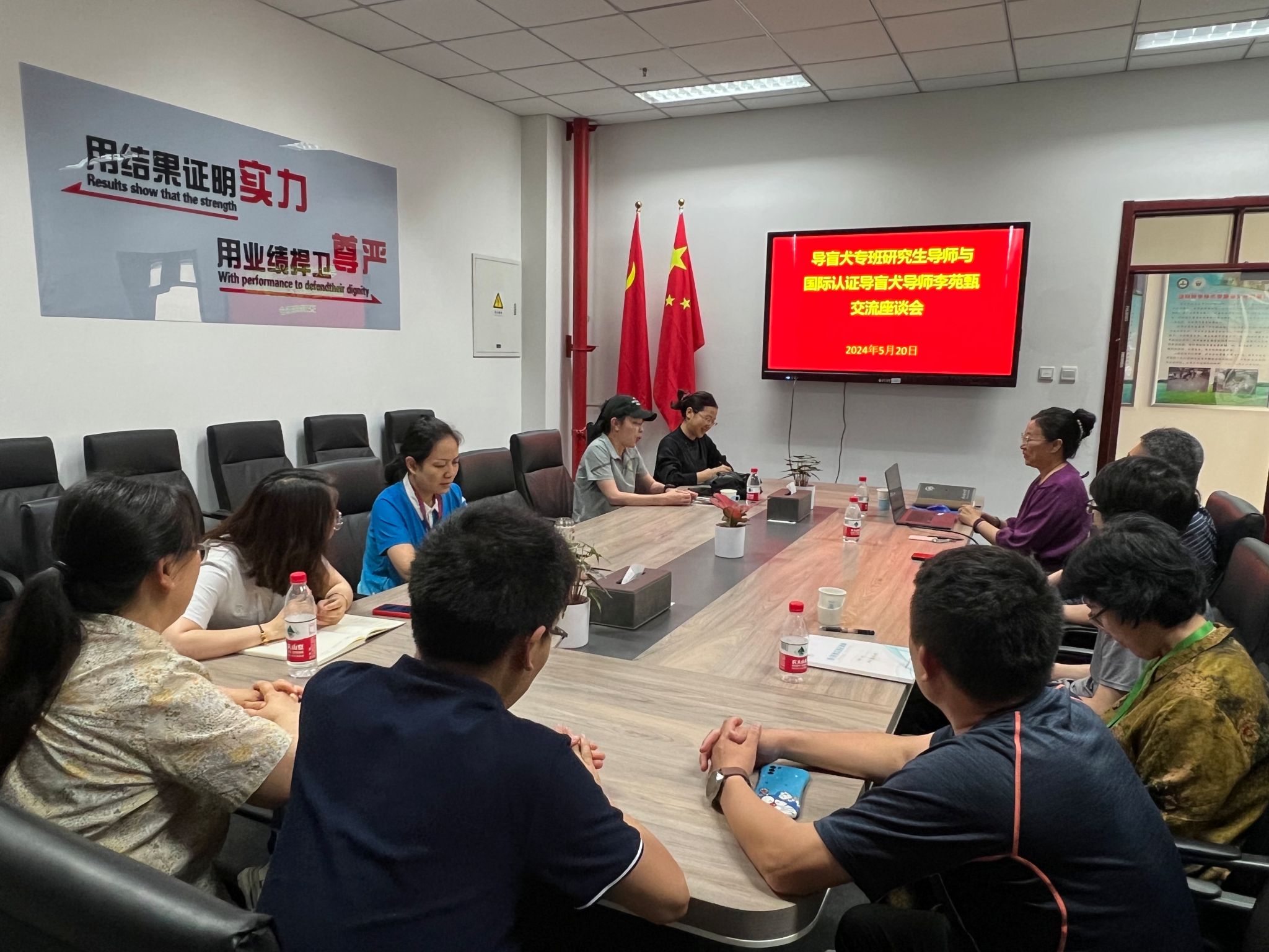 2024年5月20日下午在动科楼305,导盲犬专班研究生导师与国际认证导盲犬导师李苑甄进行了交流座谈,会议由导盲犬专班负责人段慧琴主持,导盲犬专班导师和部分学生参加了交流会。交流会主题是“导盲犬专班研究生培养过程中实训锻炼安排和毕业论文选题方向”。大家针对导盲犬繁育,行为训练,常见健康问题等方面存在的问题和需求进行了深度交流探讨,李苑甄对大家感兴趣的问题进行了详细的解答,并对研究生实践锻炼安排和论文选题给出了专业的指导和建议。