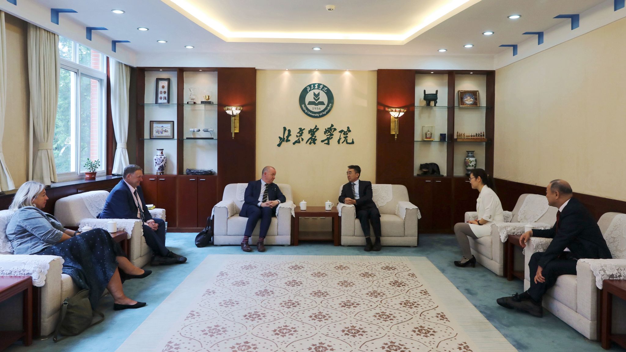 赵锋对Ken Sloan校长一行的到访表示热烈欢迎。他指出,两校合作基础深厚,二十年的中外合作办学项目取得了丰硕成果。前不久召开的学校第四次党代会明确提出实施质量立校工程,推进人才国际化培养,希望今后两校能继续发挥中外合作办学的优势和特色,持续提高中外合作办学水平和人才培养质量,持续推动两校高质量发展,提升两校国际影响力和竞争力。