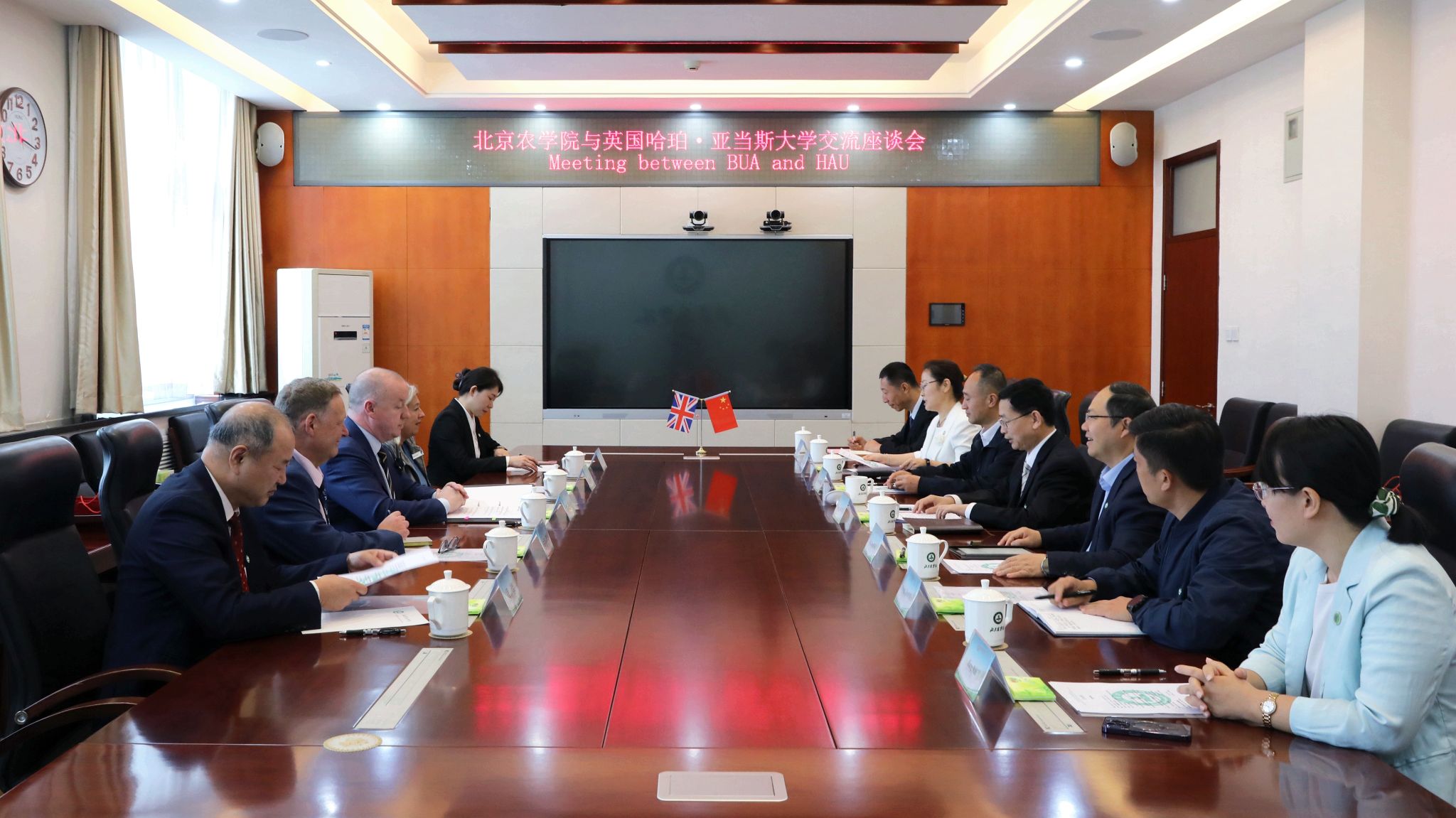 10月13日上午,英国哈珀·亚当斯大学校长Ken Sloan、首席全球影响官Ian Rowley、合作办学项目主管Sandra Turner一行访问世界杯官网。校领导赵锋、段留生热情接待Ken Sloan一行。