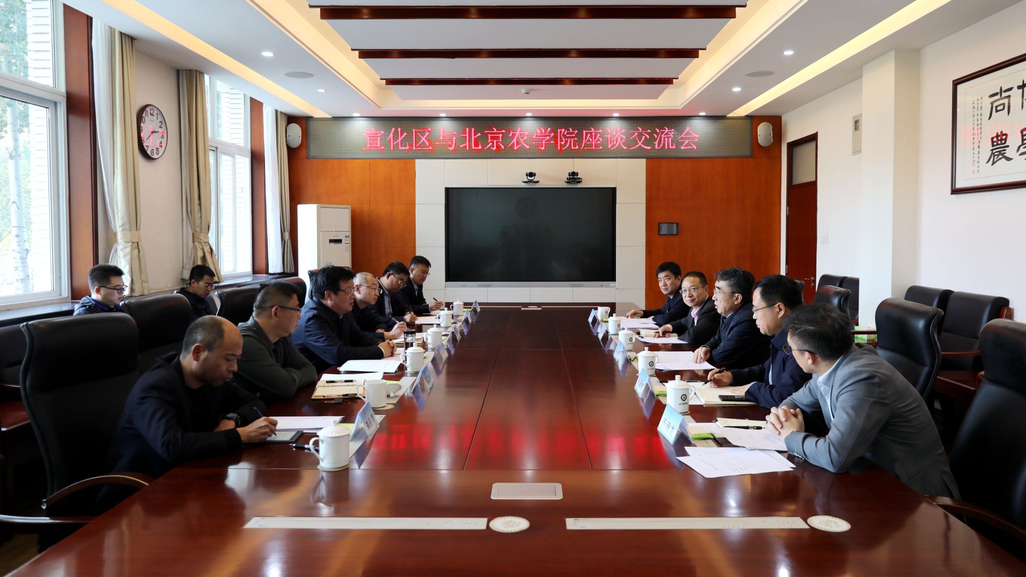 宣化区农业农村局局长易雪彬、国家现代农业产业园主任刘振中介绍了下一步合作需求,希望学校在农业人才培训、人才引进、农产品加工等方面开展合作。
