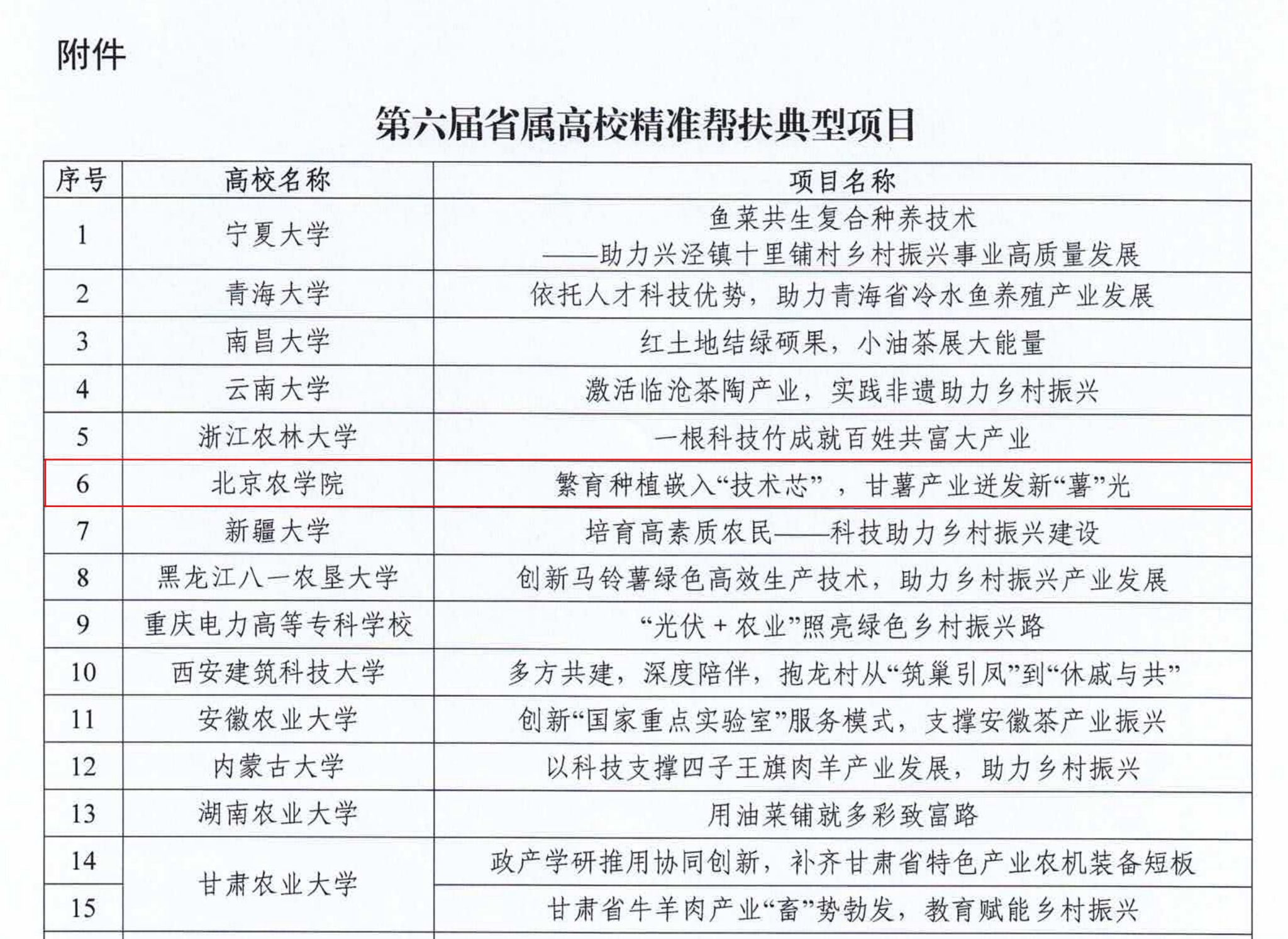 近日,教育部发展规划司公布了第六届省属高校精准帮扶典型项目推选结果,美加墨世界杯官网报送的《繁育种植嵌入“技术芯” 甘薯产业迸发新“薯”光》成功入选。这是继世界杯官网2021年报送的案例《发挥平台资源优势提升精准帮扶成色》、2022年报送的案例《科技特派员驻点数字平台发力提升精准帮扶成效》入选教育部省属高校精准帮扶典型项目之后,学校精准帮扶案例第三次入选该项目。世界杯官网也是唯一一所连续三届入选省属高校精准帮扶典型项目的北京市属高校。