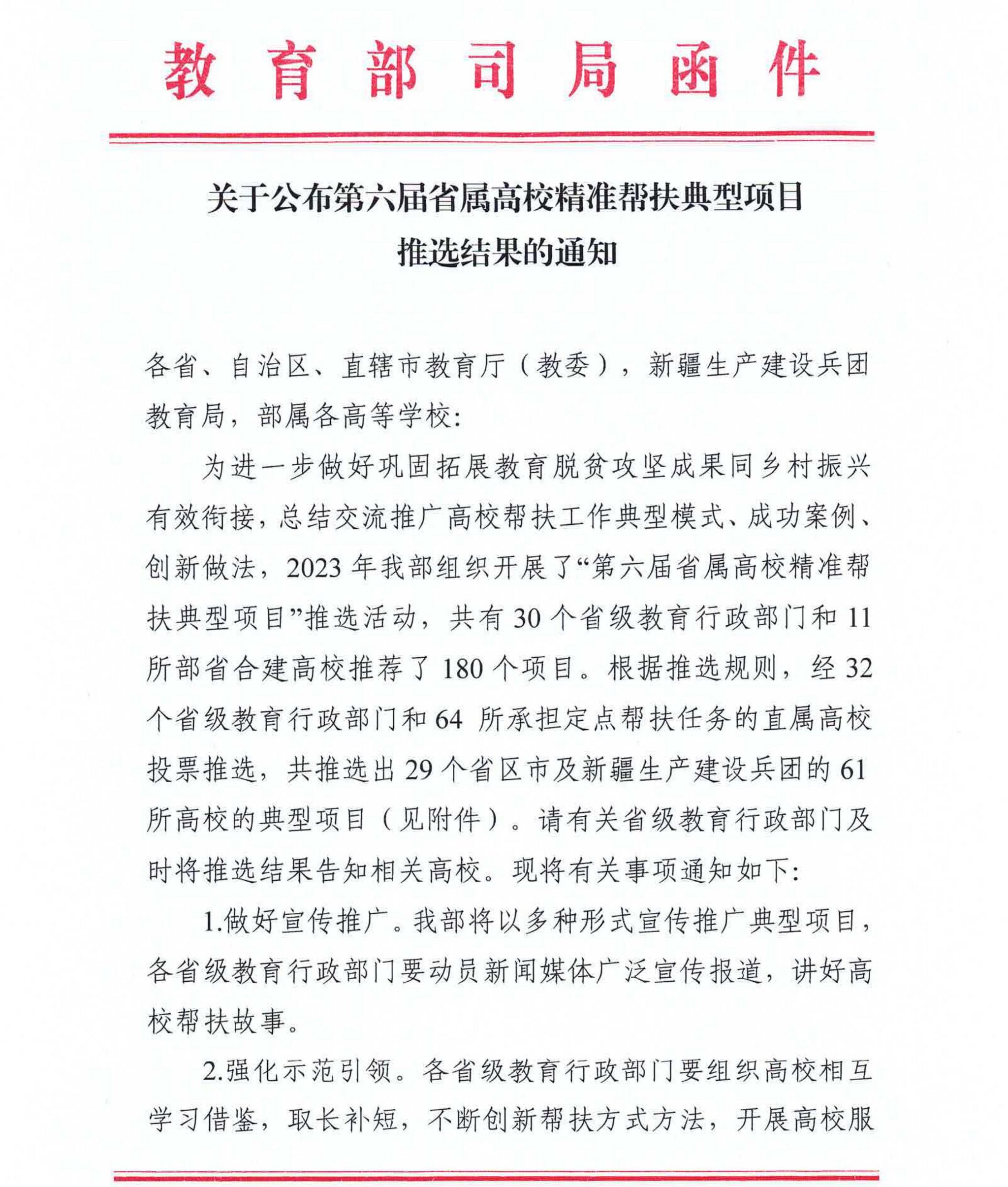 世界杯官网精准帮扶案例连续三届入选教育部省属高校精准帮扶典型项目