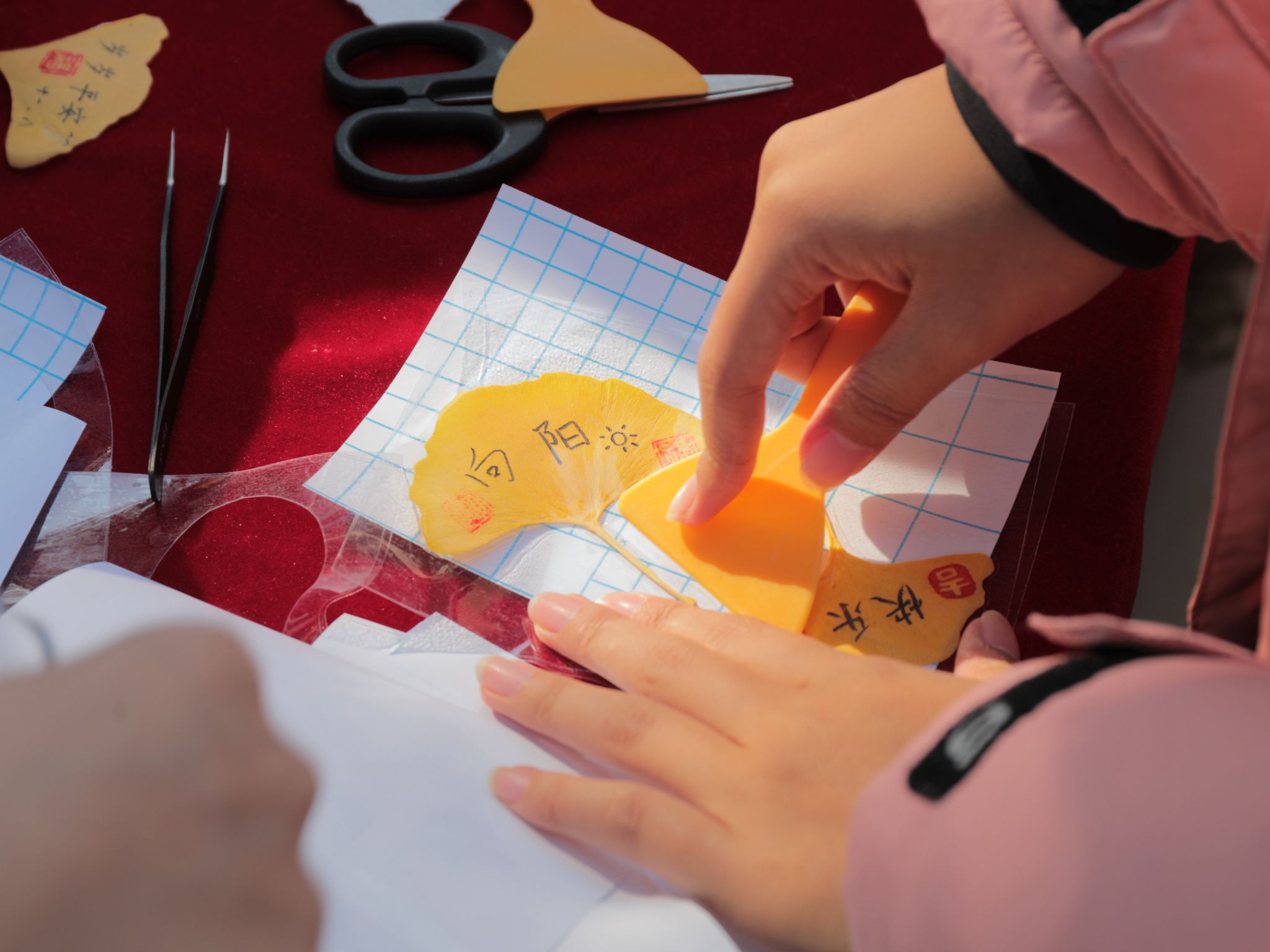 “以落叶为纸,在惊云书画社成员的指导下,用毛笔写下美好的心愿或诗句,再制作成颇具特色的银杏叶书签,这样的方式既新颖又令人难忘。”高婧萱同学在现场制作了多枚书签。她表示,银杏节让自己有机会静静感受季节的变化和校园的独特风景,是一次十分有意义的体验。