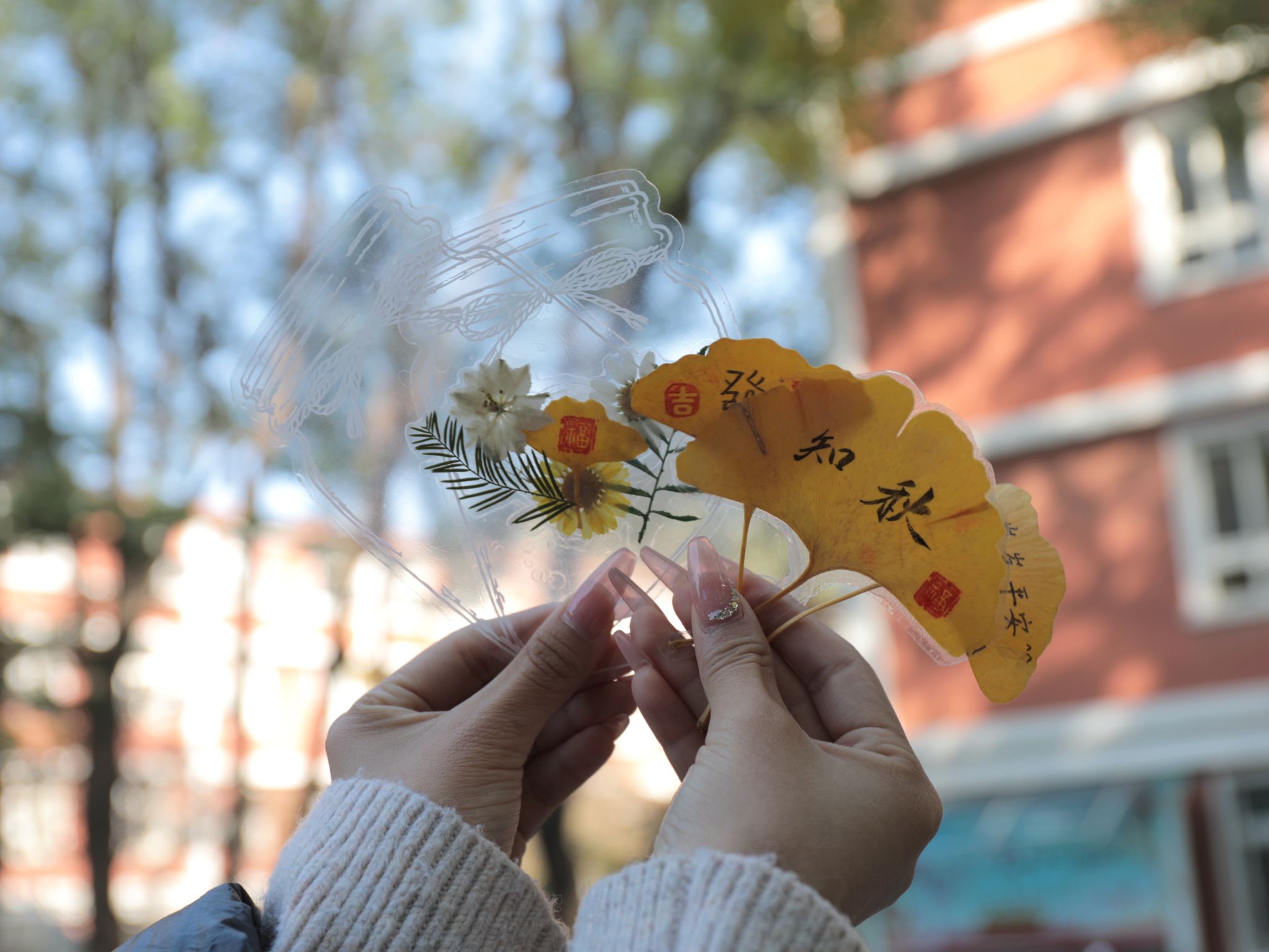 银杏路一直是北农师生秋冬必去的“校园网红打卡地”,近日,首届校园银杏文化节举办。同学们在银杏叶上题写心愿、自制书签、把银杏落叶做成创意花束,充分感受银杏之美、校园之美。