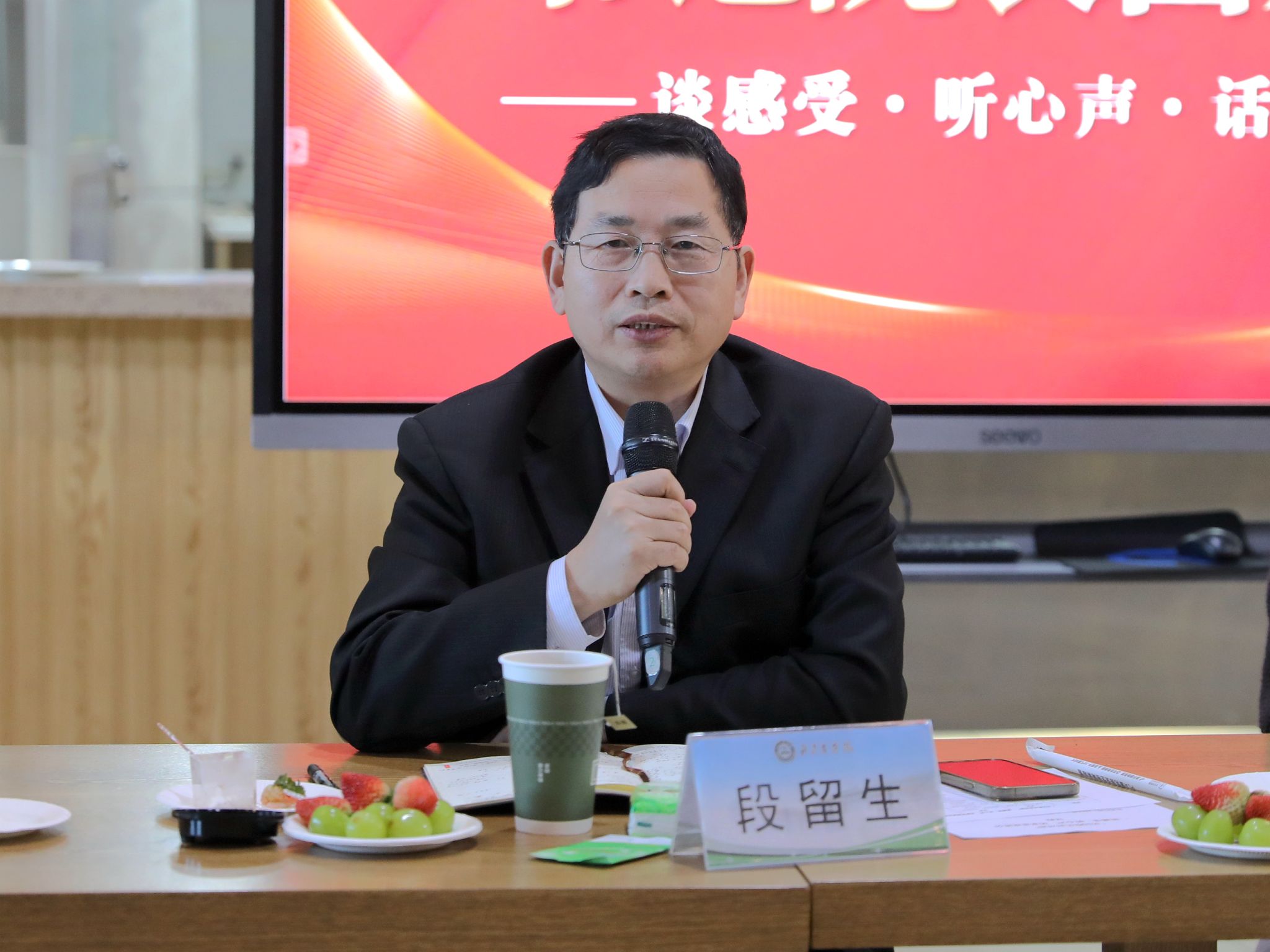 “这几天降温了,同学们宿舍的暖气热不热呀?”“学期过半,大家学习上有什么困难吗?”“身体是‘革命’的本钱,大家要注意劳逸结合,增加体育锻炼。”在11月16日下午举行的座谈上,学校党委副书记、院长段留生来到三食堂二层,详细询问同学们的学习生活情况,倾听同学们的想法和建议,共同解难题、话成长、促发展。