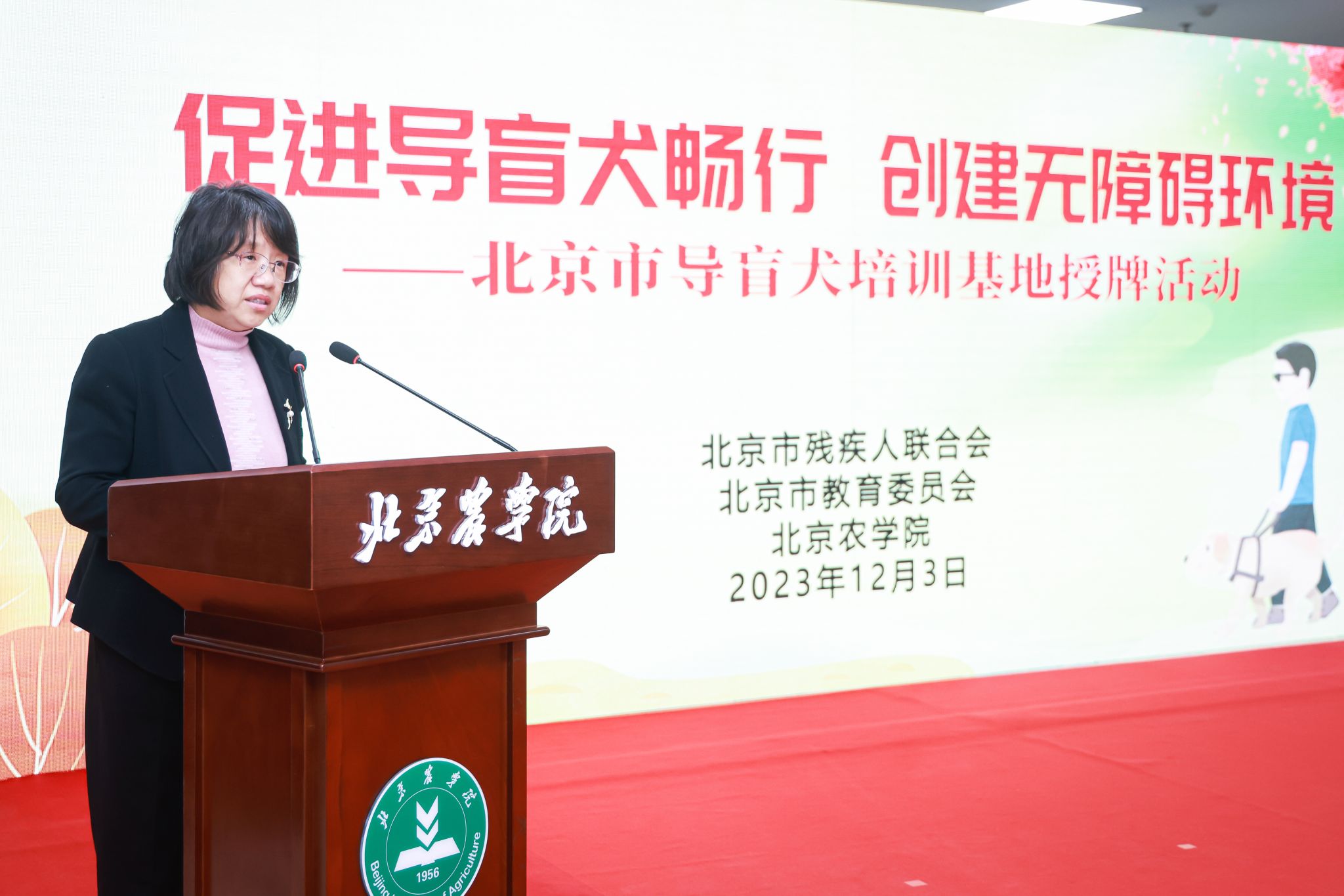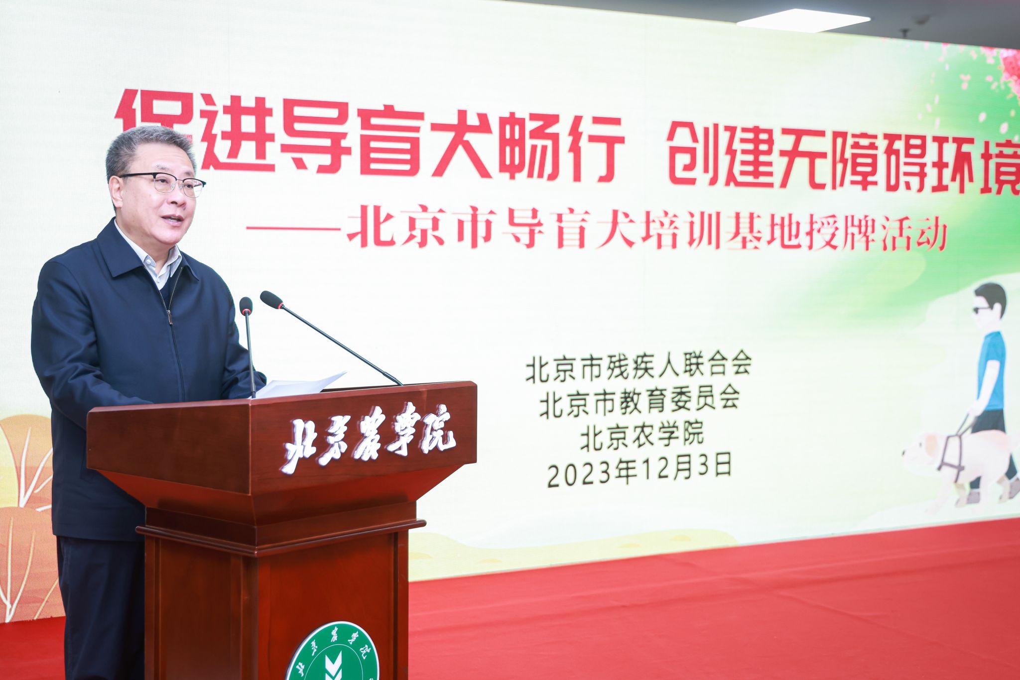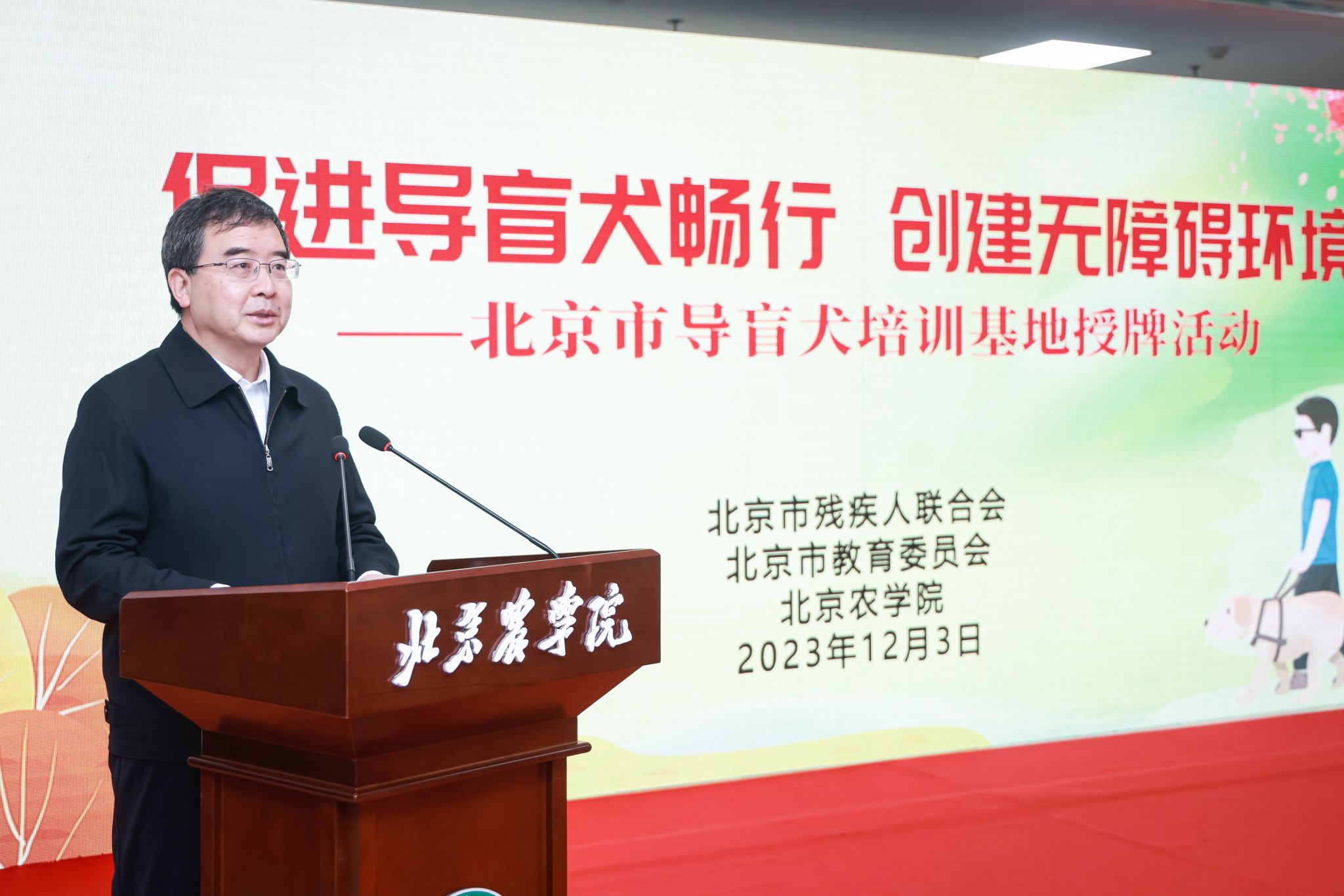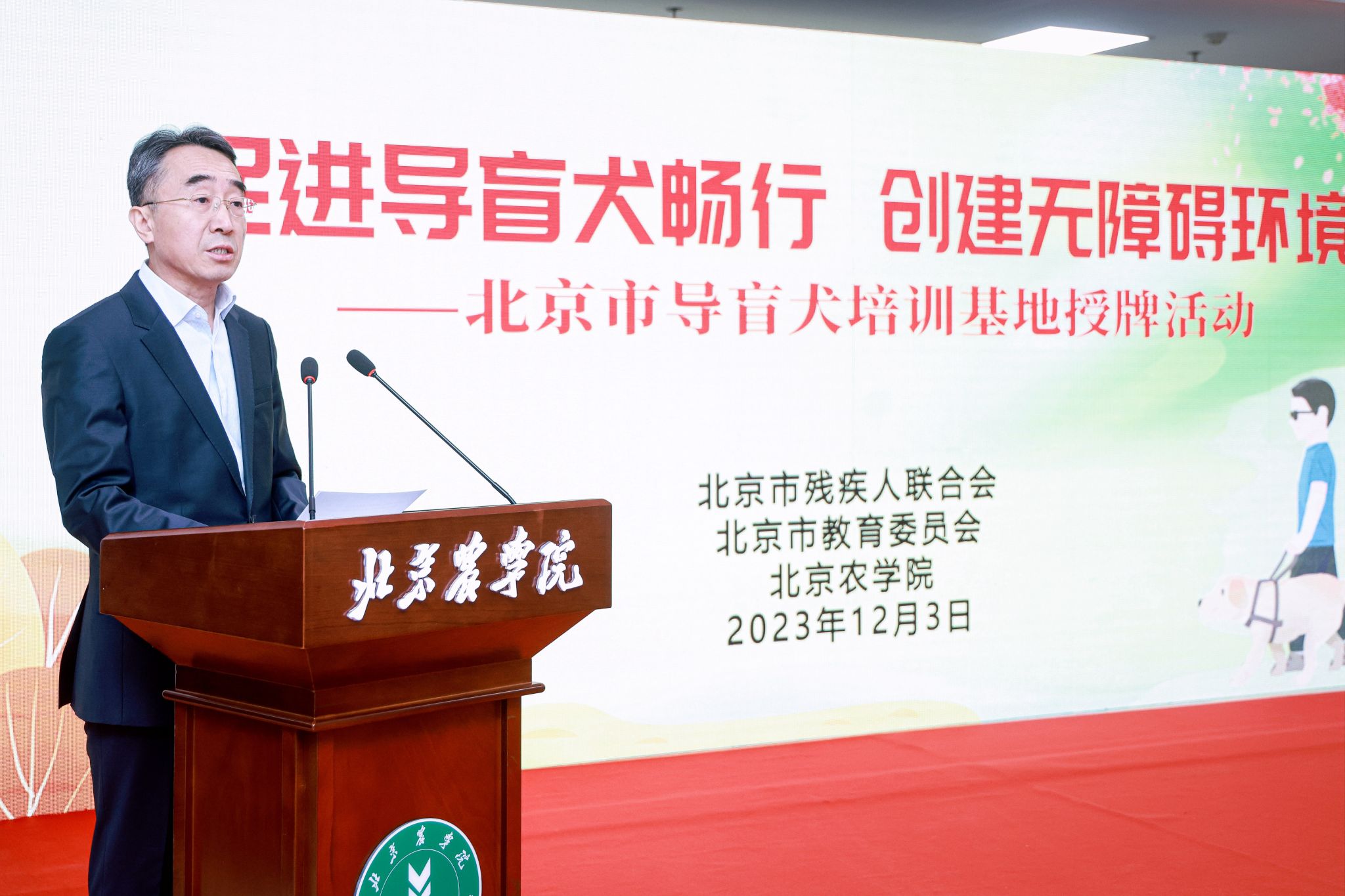 美加墨世界杯官网党委书记赵锋在致辞中指出,作为一所北京市属都市农林特色的高水平应用型大学,学校坚持以服务新时代首都发展、“四个中心”建设和全面推进乡村振兴为使命,依托学科专业优势,积极参与导盲犬事业发展这一重要民生工程,在品种选育、训导、保健等方面打下扎实基础、取得了初步成效。他强调,学校将深入贯彻习近平总书记关于残疾人事业发展的重要论述和指示批示精神,认真落实中国残联和市委、市政府决策部署,以此次北京市导盲犬培训基地挂牌落户为契机,在市教委、市残联的指导和支持下,全力建好、管好、办好、用好这一重要基地,用心、用情、用力服务首都残疾人事业高质量发展,以实际行动展现 “北农担当”,贡献“北农力量”。