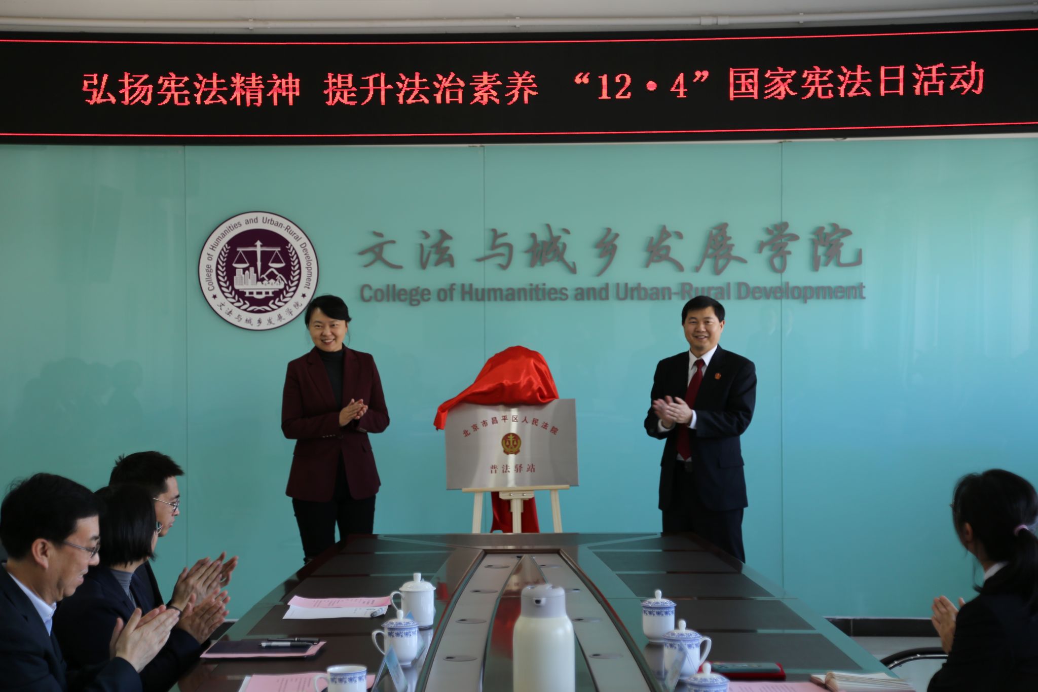 11月29日,学校举办国家宪法日校院共建活动,北京市昌平区人民法院诉源治理人才孵化(培养)基地、北京市昌平区人民法院普法驿站正式在世界杯官网挂牌成立。学校党委常委、副院长武艳,昌平区人民法院党组成员、副院长潘幼亭共同为基地和普法驿站揭牌。武艳为潘幼亭颁发了客座教授聘书。文发学院负责人为沙河法庭庭长邵敏、副庭长刘敏颁发了校外导师聘书。