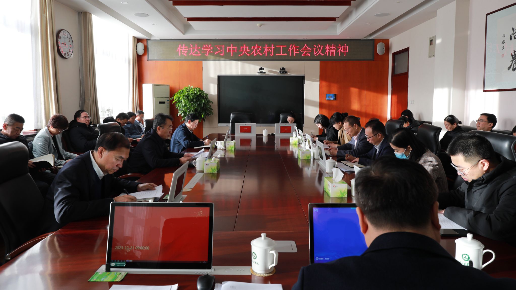 会议指出,中央农村工作会议深入贯彻落实习近平总书记关于“三农”工作的重要论述和重要指示精神,贯彻落实中央经济工作会议精神,分析当前“三农”工作面临的形势和挑战,部署2024年“三农”工作。习近平总书记关于“三农”工作的重要指示,站在党和国家事业全局高度,阐明了推进乡村全面振兴的战略要求和主攻方向,为做好当前和今后一段时期的“三农”工作指明了方向、提出了要求。会议强调,要持续不断地深入学习习近平总书记对“三农”工作的重要指示精神,将学习融会贯通落实到立德树人、办学治校、改革发展的全过程,将学习成效转化为推进高质量发展、服务乡村振兴的生动实践和实际成果。要坚持立德树人根本任务,大力培养知农爱农新型人才,大力开展有组织科研和社会服务,主动对接中央农村工作会议强调的农产品生产、种业振兴行动、农民增收促进行动、农村人居环境整治提升行动、加强农村精神文明建设等方面的需求,为有力有效推进乡村全面振兴做出北农贡献。