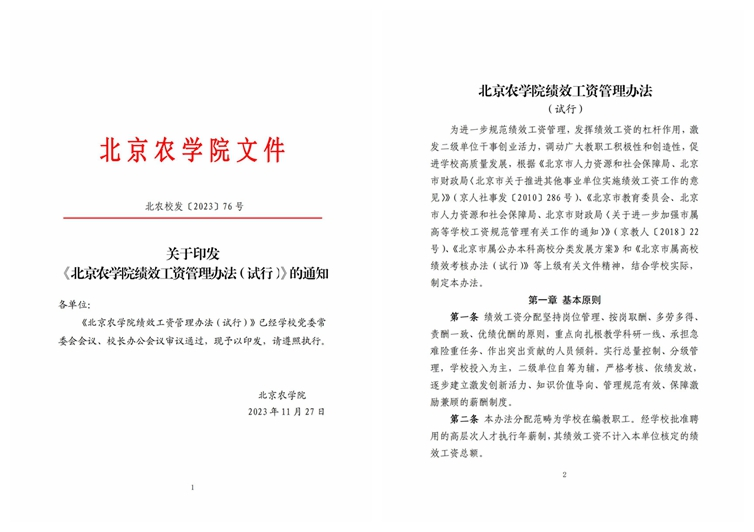 构建“多劳多得、优绩优酬”绩效分配新机制。多年来,“干多干少一个样”“干与不干一个样”“大锅饭式”薪酬分配已经成为阻碍学校高质量发展的瓶颈,此次岗位聘任聚焦这一瓶颈,坚持“多劳多得、优绩优酬”原则,大力推进绩效分配改革。结合学校近两年的一次性绩效分配、年度绩效分配的实践探索,制定出台了学校绩效工资管理办法。该办法规范了工资构成、优化了基础性绩效核算方式、突出了二级单位差异奖励绩效的自主权、加强了高水平成果的绩效奖励,形成了符合学校实际、突出业绩贡献和绩效考核导向、激励教职工积极性的薪酬分配新体系。根据薪酬分配新机制,学校充分利用北京市教委对学校分类发展绩效考核核增的绩效工资额度,自筹资金,于2023年11月至12月完成了差异奖励绩效分配工作。