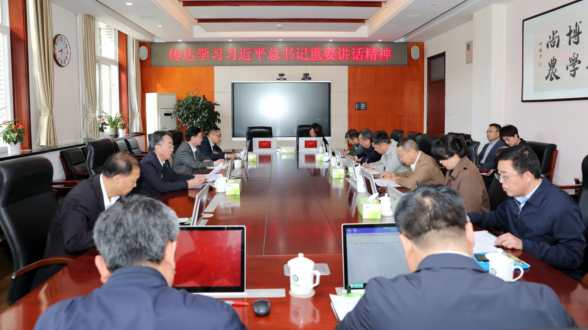 会议强调,要深入学习贯彻习近平总书记重要讲话精神,及时把思想和行动统一到中央和市委决策部署和要求上来,聚焦高质量发展这一鲜明主题和新时代首都发展要求,找准首都农林高校培育和发展新质生产力的切入点和发力点,努力在高质量知农爱农新型人才培养、高水平科技创新与成果转化等方面不断实现新突破。要着眼首都率先基本实现农业农村现代化现实需求,充分发挥学校教育、科技、人才优势,深度融入北京农业中关村建设、种业之都建设和“百千工程”,想方设法破解首都“三农”领域“卡脖子”技术难题、农民持续增收致富现实问题以及美丽乡村建设中的关键问题,努力在全面推进首都乡村振兴中想在前、干在前、走在前,在服务北京“四个中心”功能建设中当先锋、作表率。要坚决贯彻落实中央和市委要求,持续巩固拓展主题教育成果,以首善标准开展好党纪学习教育,在全校党员干部中大力营造学纪、知纪、明纪、守纪的浓厚氛围,以高质量党纪学习教育为高质量党建引领高质量发展提供坚强保障,以更加优异的成绩迎接新中国成立75周年。
