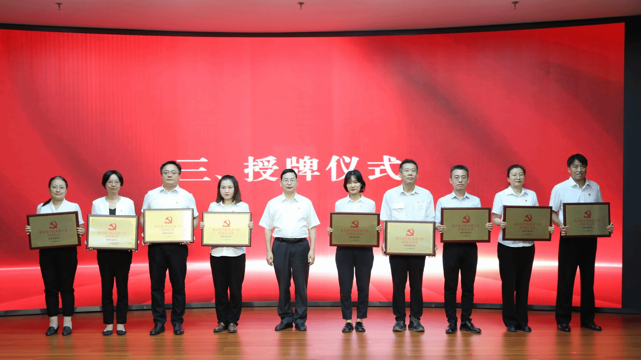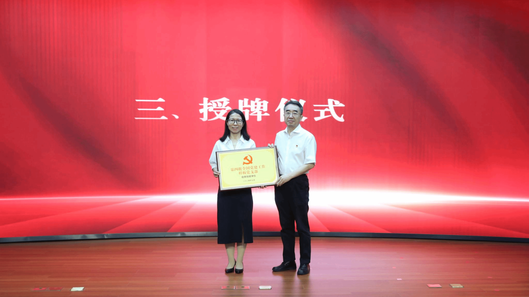 仲丛生宣读学校入选第四批全国党建工作样板支部名单及学校培育创建的党建工作标杆院系、样板支部名单。赵锋为第四批全国党建工作样板支部授牌,党委副书记、院长段留生为学校培育创建的3个党建工作标杆院系、6个样板支部授牌。