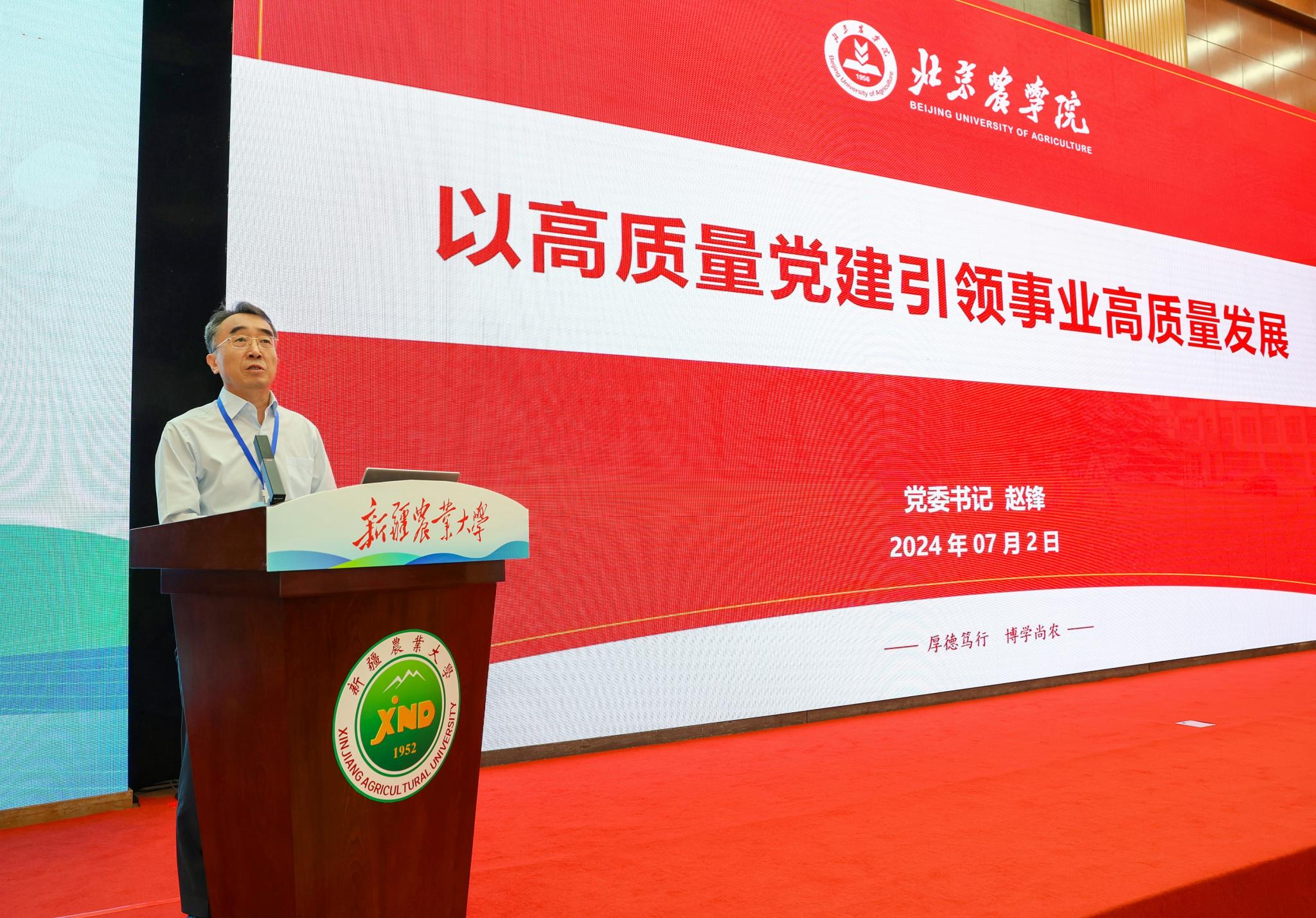 7月2日,全国高等农林水院校党建与思想政治工作研讨会第21次会议在新疆农业大学召开。来自全国41所农林水院校的党委书记、党委副书记及相关部门负责人等151位代表围绕“坚持党的全面领导,用习近平新时代中国特色社会主义思想铸魂育人,推动铸牢中华民族共同体意识,以高质量党建引领农林水院校事业全面发展,构建落实立德树人根本任务新生态新格局”主题进行交流研讨。世界杯官网党委书记赵锋参加会议并作《高质量党建引领事业高质量发展》主题发言。