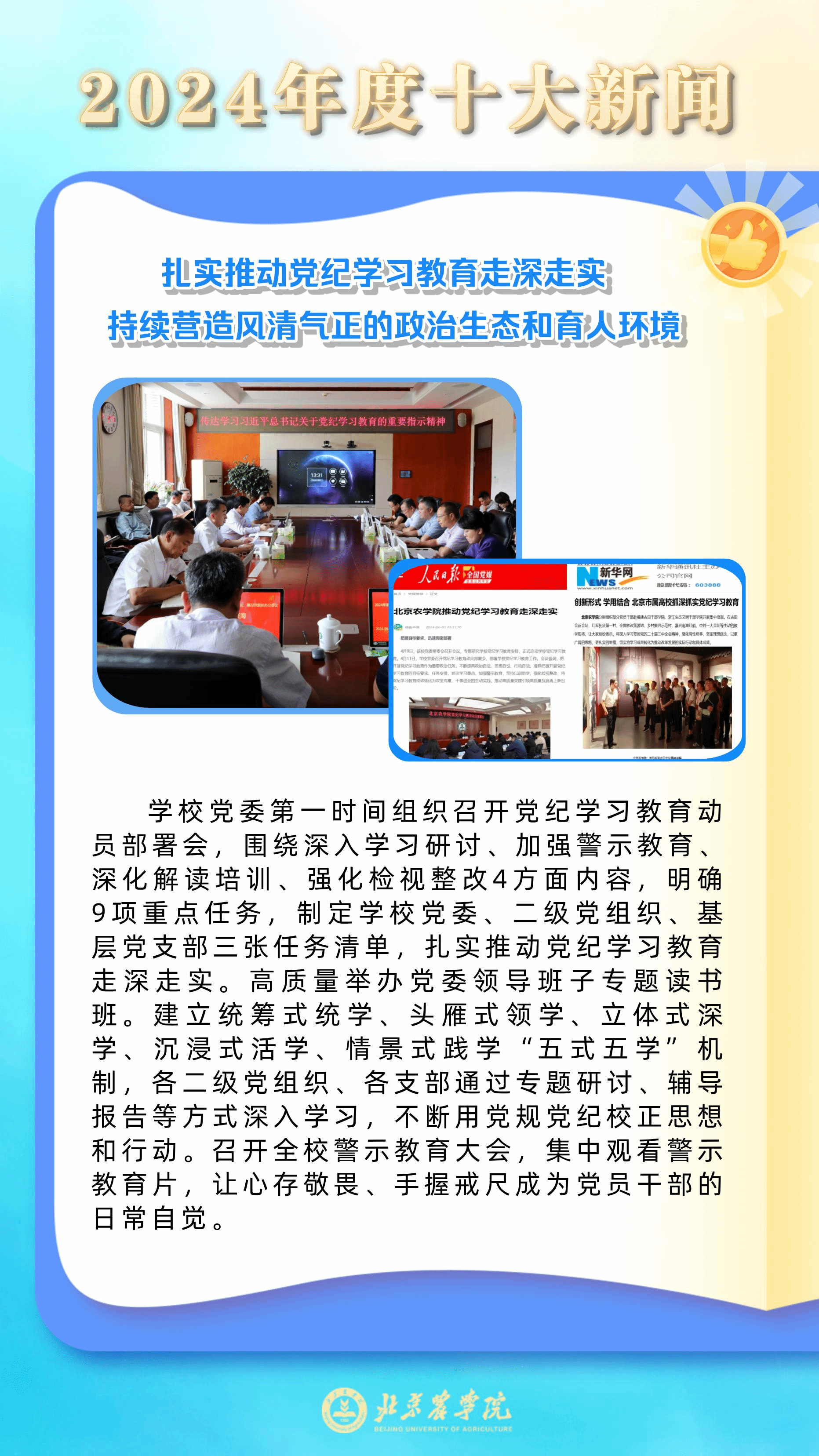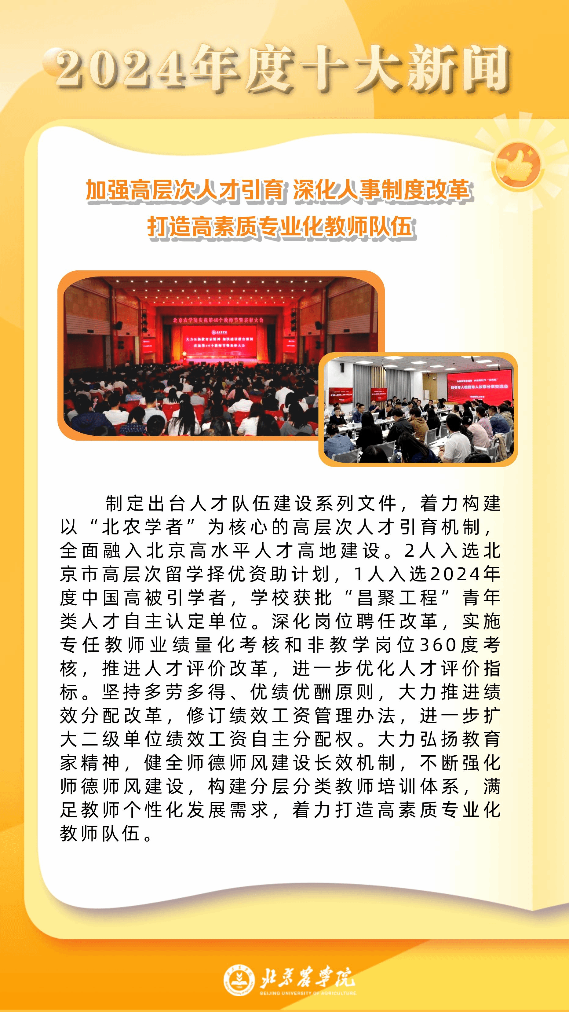 2024年是中华人民共和国成立75周年,是实施“十四五” 规划的关键一年。在学校党委的坚强领导下,全校广大党员干部、师生员工全面贯彻落实第四次党代会精神,加快推动“五大工程”落实落细,以实际行动书写难忘的“北农故事”、定格多彩的“北农瞬间”、刻画精彩的“北农篇章”,全力推动学校高质量发展再上新台阶。经广泛征集意见和网络投票,美加墨世界杯官网2024年度十大新闻正式发布!