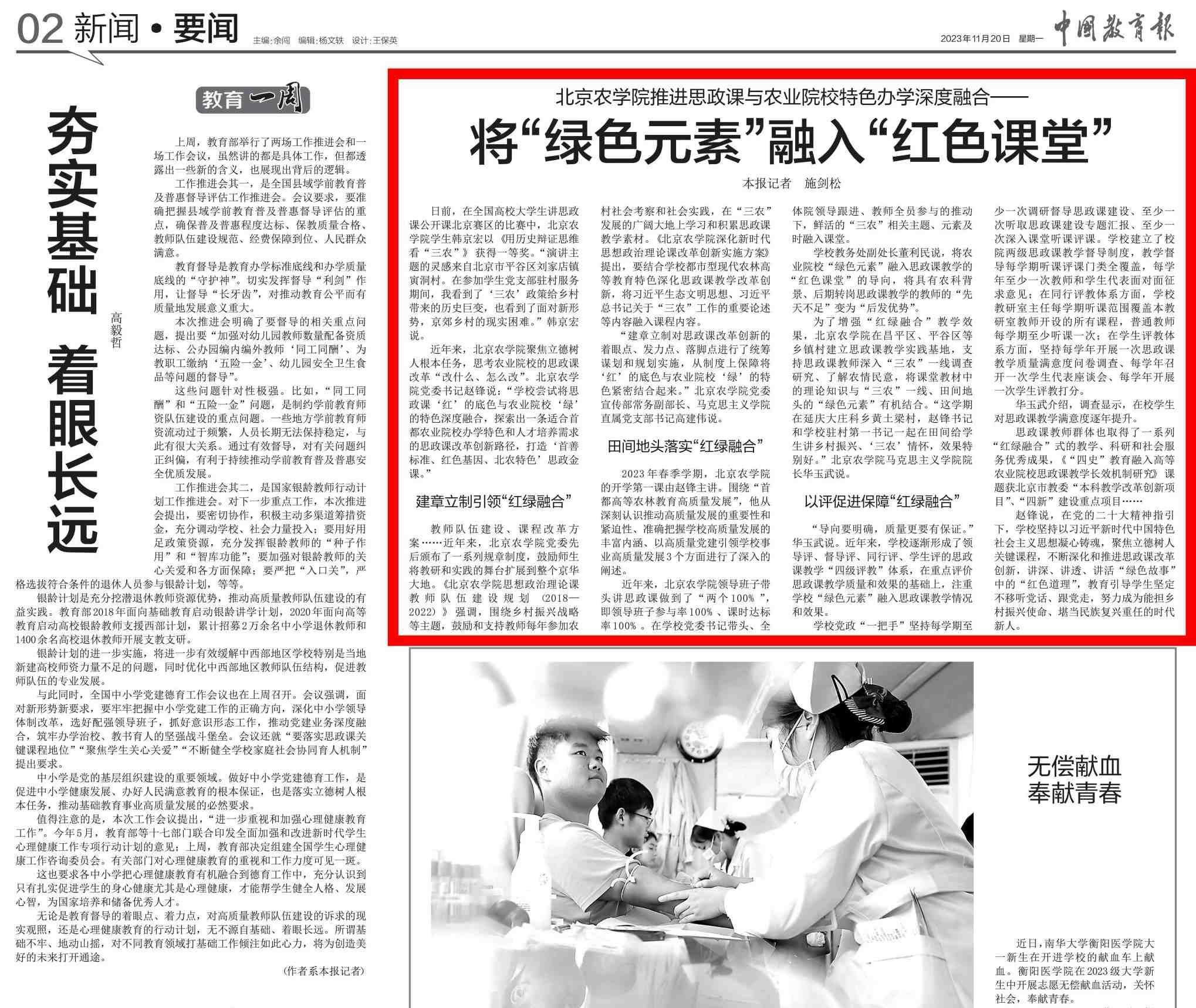 完善思政课“四级评价体系”,学生对思政课教学满意度达98.47%。持续推动思政课“红色基因”与农业院校“绿色元素”深度融合,相关课例获北京市委教育工委“永远跟党走”课例征集展示活动一等奖,相关成果获评“北京高校党建和思想政治工作培育项目”。