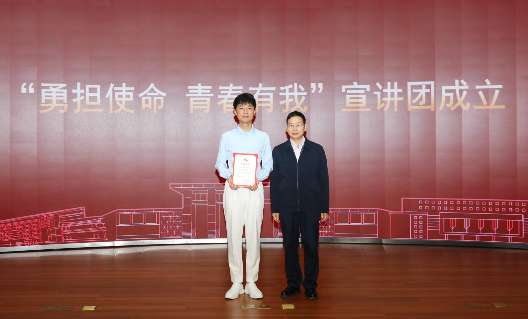 会上,学校正式成立“勇担使命 青春有我”宣讲团,段留生为宣讲团成员颁发聘书。