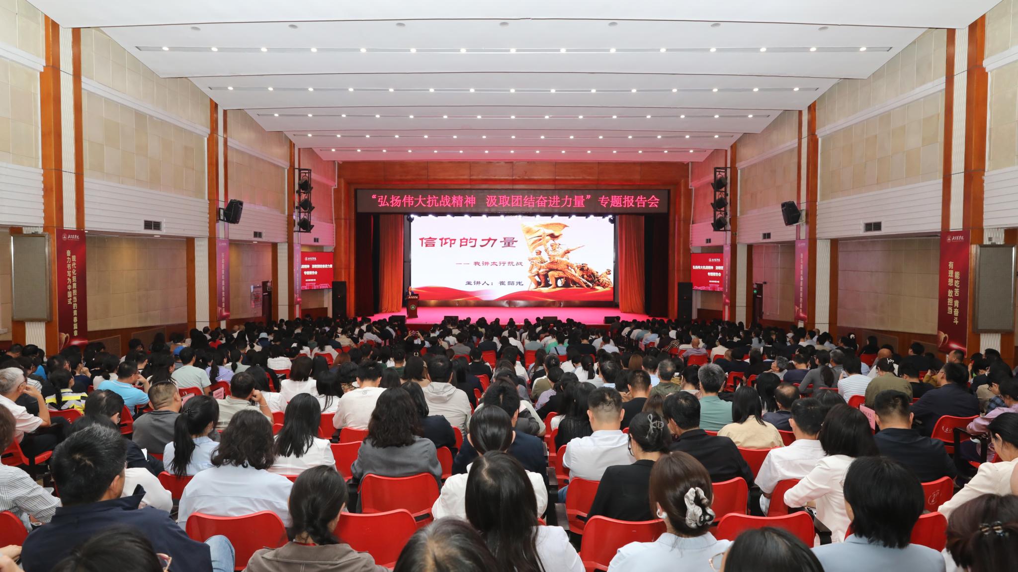 为大力弘扬和传承伟大抗战精神,激发广大师生爱国热情,引导师生从历史深处感悟精神伟力、在新征程中凝聚奋进力量,学校举办“弘扬伟大抗战精神 汲取团结奋进力量”专题报告会,师生同上一堂弘扬伟大抗战精神“大思政课”。全体校领导出席报告会,党委副书记仲丛生主持报告会。