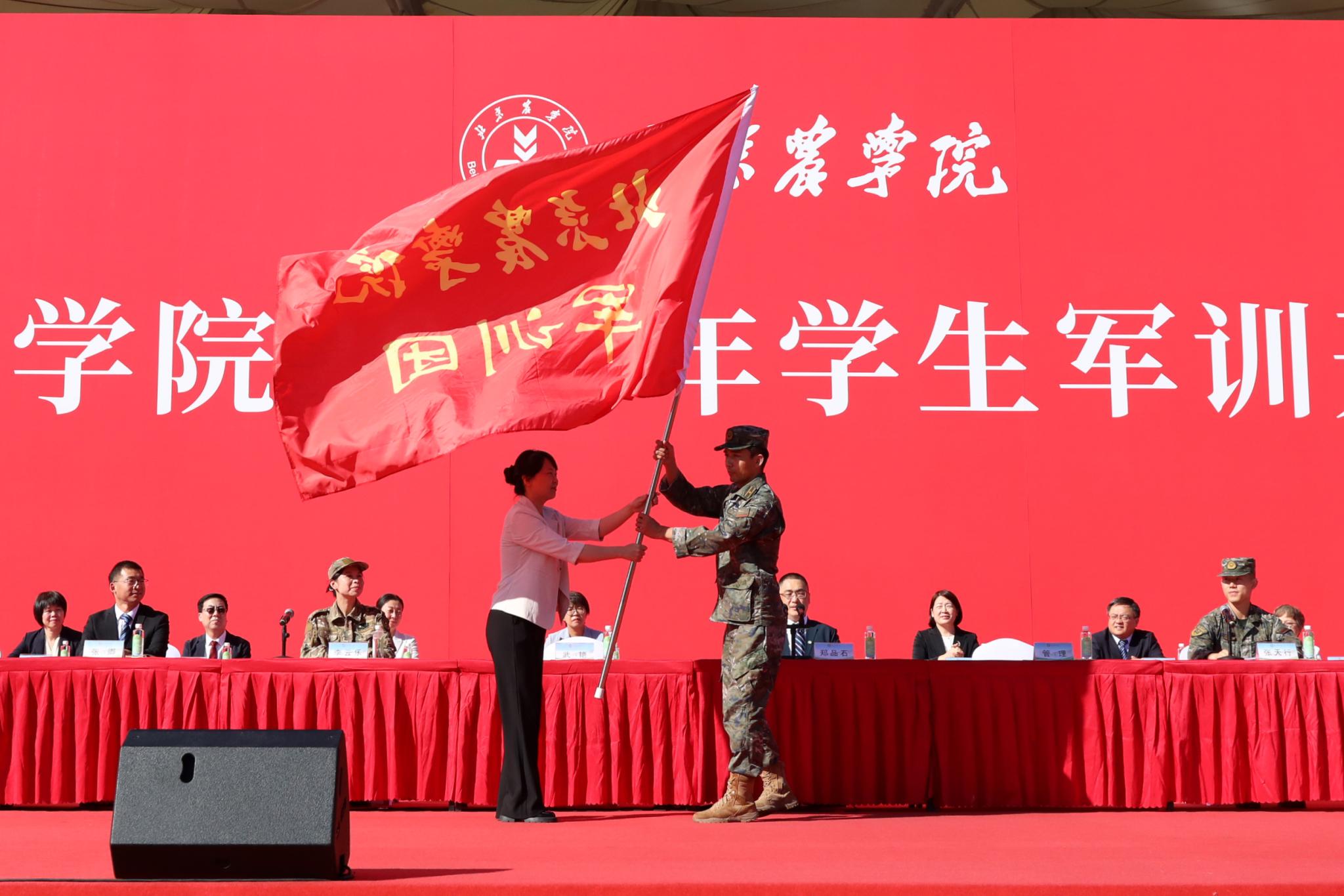 9月8日上午,学校2025级本科生军训开训仪式在运动场举行。党委副书记郑品石,党委常委、副院长武艳,承训部队武警北京市总队机动第三支队领导出席开训仪式。相关职能部门和二级学院负责人,带训教官、随训教师,全体参训学员参加开训仪式。