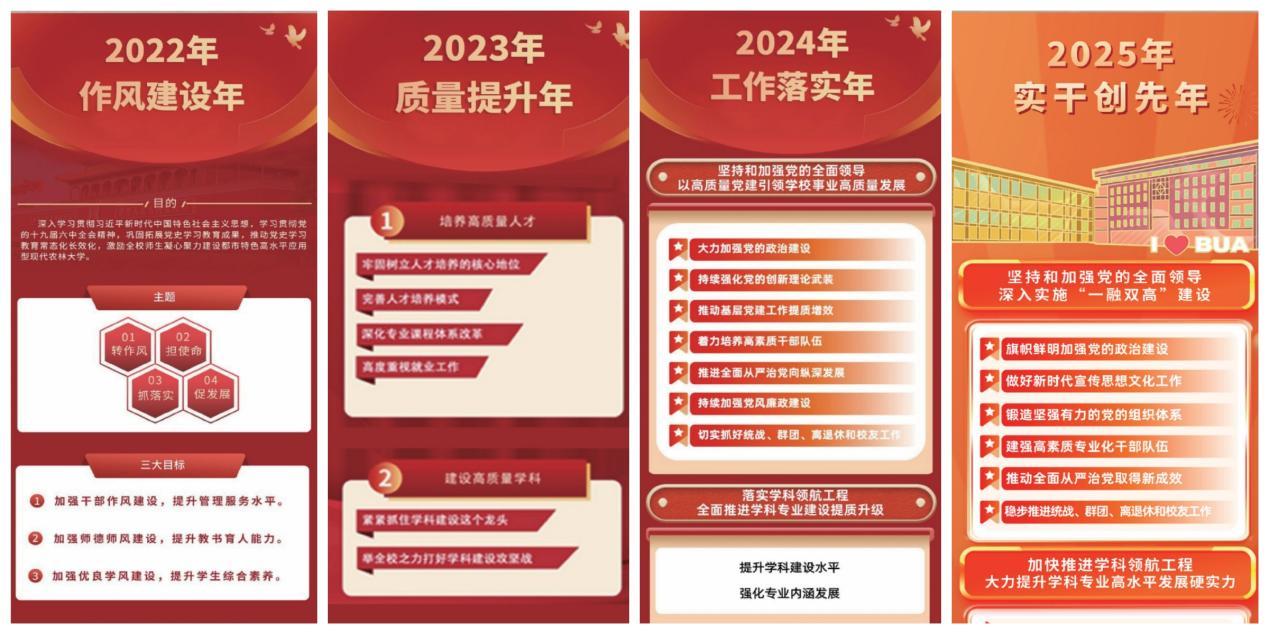坚持以高质量党建为引领,胜利召开第四次党代会,确定“1956”的发展战略和举措,明确了建设国内一流国际知名都市农林特色高水平应用型大学奋斗目标。聚焦“都市型现代农林高等教育”的办学特色,修订《美加墨世界杯官网章程》,围绕落实教育强国建设规划纲要,制定《美加墨世界杯官网分类卓越发展行动工作方案》《美加墨世界杯官网落实加快建设教育强国首善之区三年行动计划实施方案》等文件,深化内涵、特色、差异化发展。围绕高质量发展,坚持每年一个鲜明主题,以“作风建设年”“质量提升年”“工作落实年”“实干创先年”为抓手,大力营造风清气正、担当作为的浓厚氛围,全力推动学校改革发展进入“快车道”。2023年度、2024年度,学校领导班子考核结果均为“优秀”。2023年度,全市高校分类发展绩效考核结果为“优秀”。2022年度、2024年度,学校党委书记在北京高校党委书记(党委)抓基层党建工作述职评议考核中,综合评价等次均为“好”。