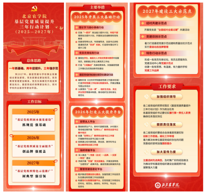 推动高校党的政治建设若干措施落细落实。坚持党委领导下的校长负责制,健全“三重一大”决策制度,完善党的委员会全体会议、党委常委会会议、院长办公会议等议事规则。认真贯彻民主集中制,严格执行重大事项请示报告制度,依法治校和科学决策水平显著提升。严格落实意识形态和安全稳定工作责任制,不断提高网络舆情监测和舆论危机预防和应对能力。旗帜鲜明树正气树榜样树典型,打造“北农榜样(最美北农人)”特色品牌,《人民日报》、新华社、中央电视台、北京日报等各级各类媒体年均宣传报道500余篇。