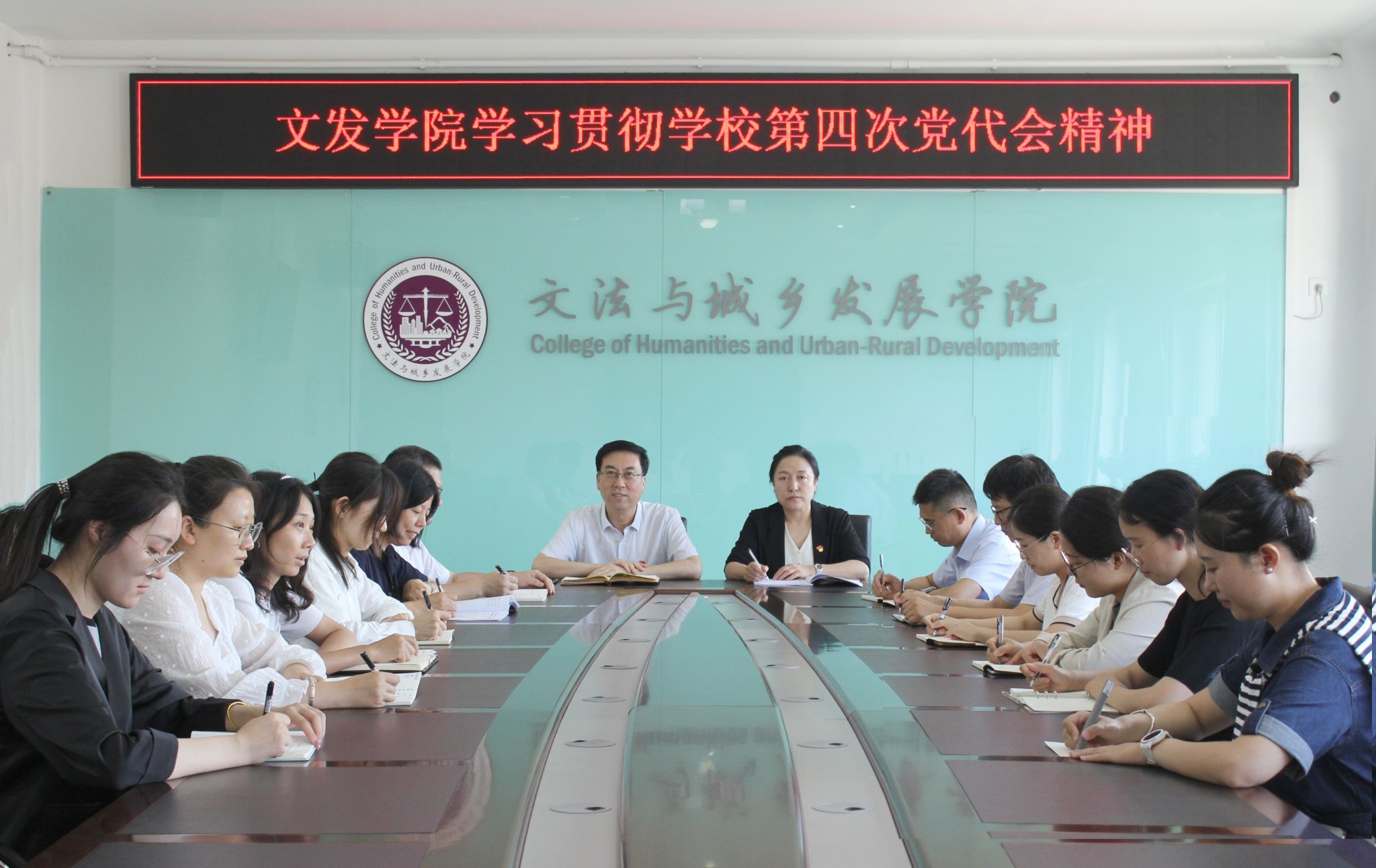 蓝图绘就催奋进,踔厉奋发启新程。9月3日上午9点,文法与城乡发展学院召开教职工大会深入全面传达学习学校第四次党代会精神,安排部署落实工作,切实把思想和行动统一到党代会精神上来,把智慧和力量凝聚到完成党代会确定的目标任务上来,担当实干,锐意进取,坚定不移朝着全面建设都市农林特色高水平应用型大学阔步前进。会议由学院党委书记赵和文主持,全体教职工参会。