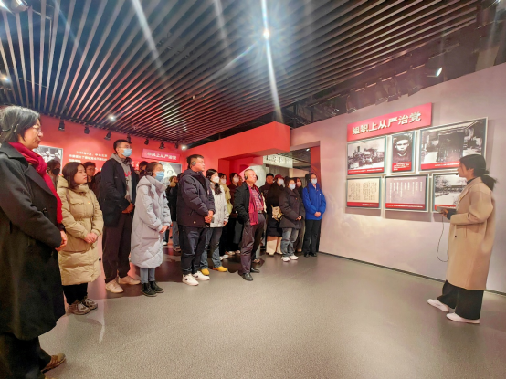 在讲解员引领下,学院师生通过“虚拟技术”聆听党的创始人之一李大钊同志与青年学生“跨越时空的对话”;在“实景演示”基地观看了江姐和狱友们在渣滓洞集中营绣红旗的视频片段;通过焦裕禄、黄旭华、杨为民、丁秀兰等优秀共产党员先进事迹展播,更加深刻理解了“平常时候看得出来,关键时刻站得出来,危急时刻豁得出来”的共产党员本色。同时,振聋发聩的“耿飚之问”、落马官员忏悔的真实声音、腐败分子身败名裂的惨痛人生扼腕警醒,引发了大家的深刻思考。