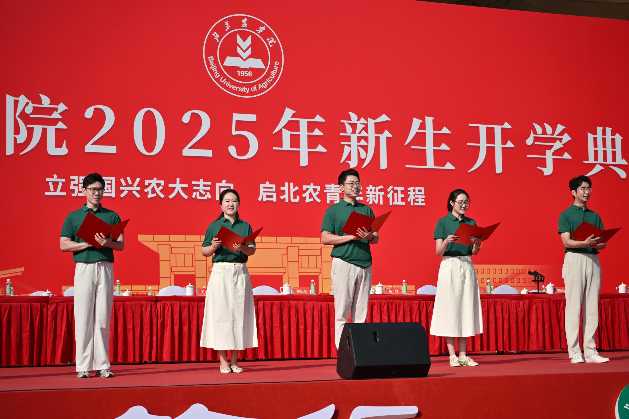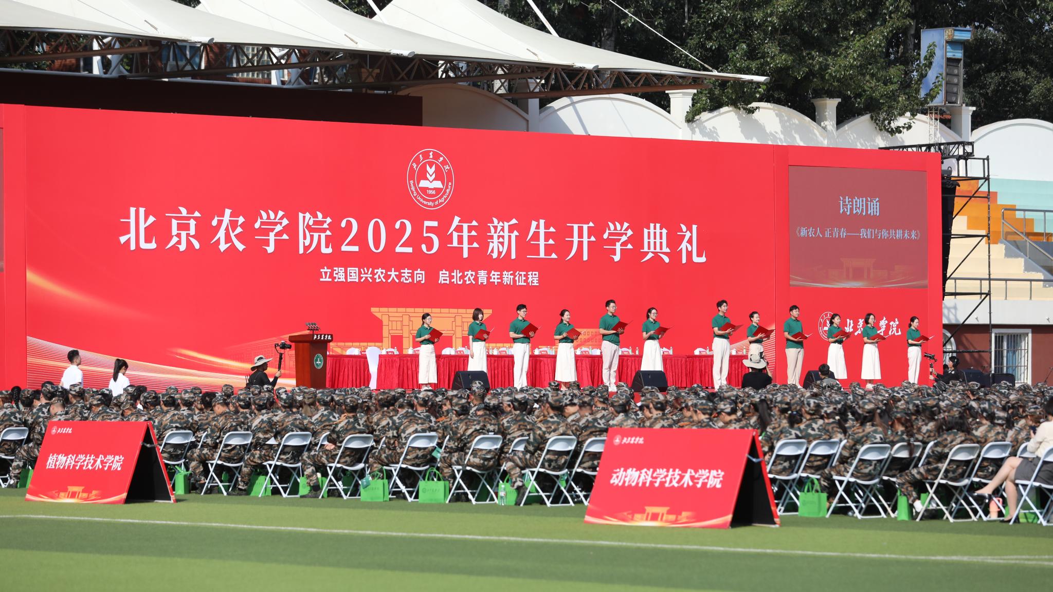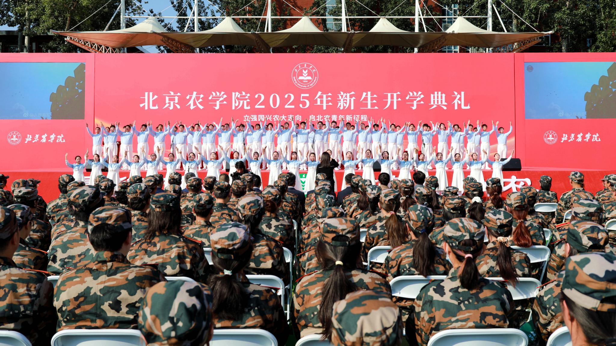典礼开始前,世界杯官网参加纪念中国人民抗日战争暨世界反法西斯战争胜利80周年大会广场合唱团的89名师生带来大合唱,用激昂的歌声表达了对历史的缅怀、对和平的珍视以及对新时代的赞美,勉励新生把伟大抗战精神转化为学习动力,在青春的耕耘中写下崭新的篇章。新生辅导员及新入职辅导员代表带来诗朗诵《新农人,正青春——我们与你共耕未来》。