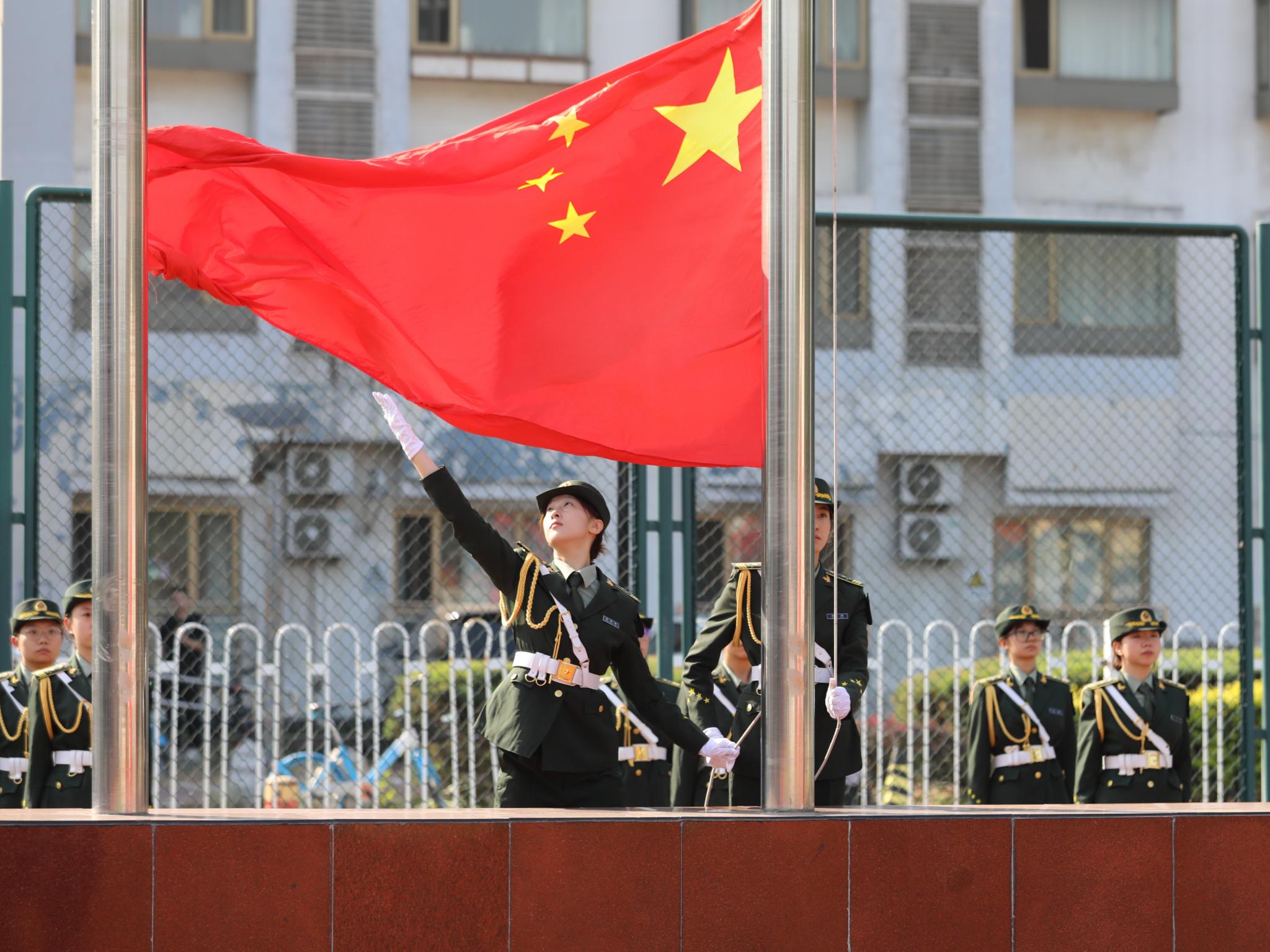 上午8点,典礼正式开始。在雄壮的国歌声中,鲜艳的五星红旗冉冉升起。