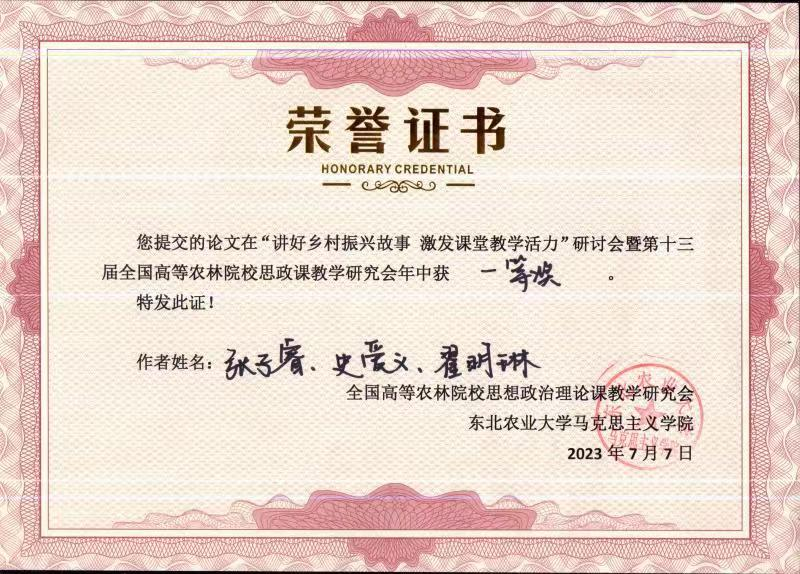 年会从各高校提交的70余篇会议论文中组织进行了优秀评选,世界杯官网马克思主义学院张子睿老师等提交的《依托自媒体直播开展隐性思想政治教育刍议》荣获一等奖。该文从理论依据、典型案例、问题和建议等方面深刻阐述了依托自媒体直播开展隐性思想政治教育的重要意义和实现路径,并结合世界杯官网办学特色和人才培养需求,围绕“讲好乡村振兴故事,激发课堂教学活力”,提出了增强思政课教学“三性一力”的具体建议和实施措施。