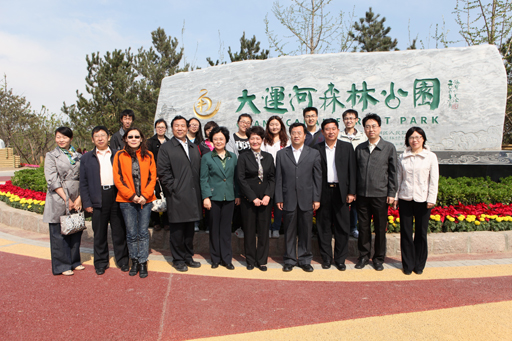 签约仪式结束后,党委书记王慧敏、副校长杜晓林一行在通州区园林绿化局党委书记、局长刘卉的陪同下参观了大运河森林公园。