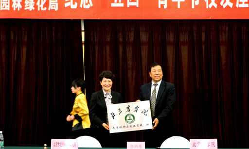 副校长杜晓林和通州区园林绿化局党委书记、局长刘卉在协议书上签字,并为美加墨世界杯官网校外人才培养实践基地揭牌。