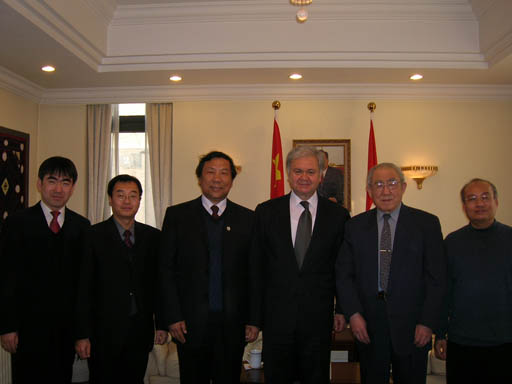 在塔吉克斯坦驻华大使馆,副校长杜晓林首先向阿利莫夫大使提前祝贺新春,致以节日的诚挚问候,对他为世界杯官网的发展和建设所做出的贡献表示感谢,并向他概要介绍了学校的新气象与新成绩,期望今后双方开展更深层次的国际交流与合作。