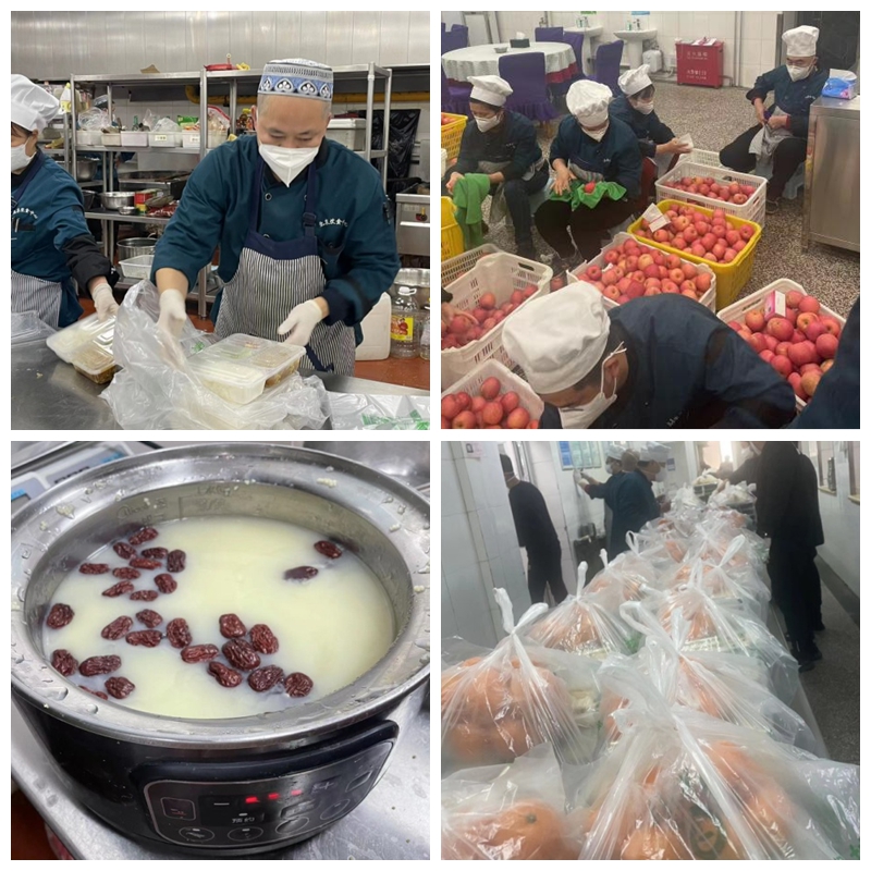 紧张的保供并没有让供餐质量打折。在保障基本供餐的同时,饮食中心力求做到营养均衡,尽量兼顾师生的个性化需求,并及时准备少数民族餐和病号餐。全体饮食人心往一处想,劲往一处使,克服重重困难,加大原材料供应消杀静置精细化管理,用辛勤汗水守护在校师生舌尖上的安全和美味。
