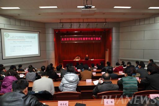 党委书记王慧敏传达了寒假高校领导干部会议和北京教育系统党风廉政建设工作会议精神,并对做好2010年工作提出三点要求。一是强化忧患意识,增强紧迫感,不断提高学校实力、影响力和竞争力;二是在工作实践上,强化创新,注重实效,不断提高工作水平;三是强化作风建设,牢固树立大局意识、全局意识,不断提高履职能力。