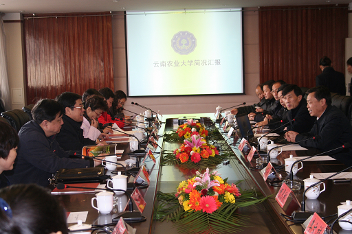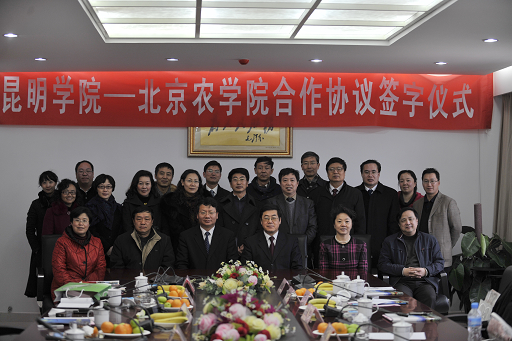 1月18-20日,校长王有年、党委副书记高东、副校长郑一淳一行8人考察了昆明学院。并与昆明学院签订发展都市型现代农业合作协议。在昆明学院校长陈世波、副校长熊晶的陪同下,校长王有年一行还参加了昆明市政府与昆明学院举办的都市型现代农业发展座谈会,参观考察了昆明晨农企业集团、云南农业大学、西南林业大学、昆明市石林县台湾农民创业园等地。
