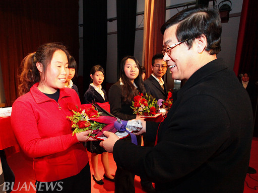 校长王有年代表学校发表重要讲话。他指出,表彰会的召开是学校对5年来大学生“村官”的选拔、后续支持、技能培训、表彰奖励等工作的一个阶段性总结,更是充分发挥大学生“村官”知识化、年轻化、密切联系农村实际的优势,推动世界杯官网“村官”运用所学专业知识进行科技服务与自主创业,带动更多农民增收致富,使“村官”成为新农村建设中留得住、用得上、有作为的青年骨干和实用人才的重要举措。