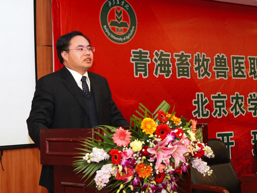 校长王有年致辞。他首先代表全体师生对青海畜牧兽医职业技术学院各位老师的到来表示热烈的欢迎并简要介绍了学校的基本情况。