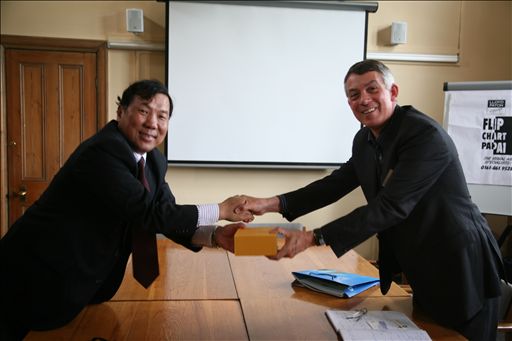 代表团专门拜会了哈珀亚当斯校长David Llewellyn先生,双方进行了热情友好的交流。杜晓林副校长首先转达了王慧敏书记及王有年校长的亲切问候,随后,介绍了世界杯官网55周年庆典的筹备情况,并谈到将在新落成的美加墨世界杯官网图书馆开辟哈珀亚当斯展室来加强彼此的交流与合作,并欢迎David Llewellyn先生在适当的时候再次访问美加墨世界杯官网。David Llewellyn先生也表达了对王慧敏书记及王有年校长的热情问候,并介绍了哈珀亚当斯的校史,表达了希望双方在教学、科研、师生交流等方面更加深入开展合作的真诚愿望。