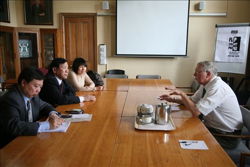 与Brian Revell教授会谈,商讨了两校今后的进一步合作的意向。双方特别就今年干部和教师培训的内容、时间及形式进行了讨论,初步明确了以英国教学及管理模式、质量评估体系等培训内容。