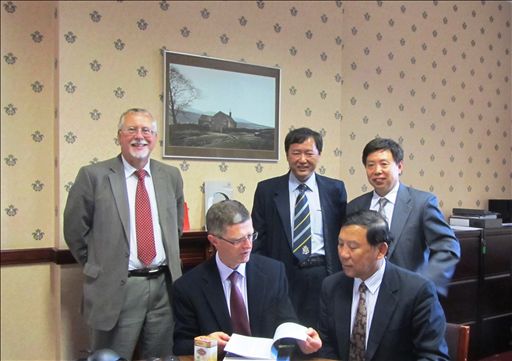 代表团与哈珀亚当斯副校长Peter Mills教授、对外政策主任Brian Revell教授和研究生部主任Andy Wilcox先生进行了有关双方合作开展研究生教育的工作会谈。双方就研究生培养体系、专业设置及特点进行了交流和研讨,初步提出了以世界杯官网专业硕士教育为切入点、兼顾两校研究生培养体制与教育资源,探索“1+1”研究生培养的模式,力争使加入项目的世界杯官网研究生同时获得两校的硕士学位的基本工作思路。会谈中,杜晓林副校长还向Peter Mills副校长介绍了美加墨世界杯官网建校55周年庆典及国际校长论坛的筹备情况,并邀请Peter Mills教授出席,Peter Mills教授欣然接受了邀请。