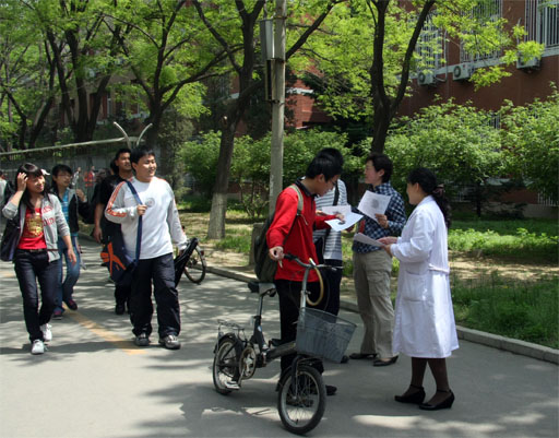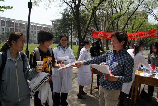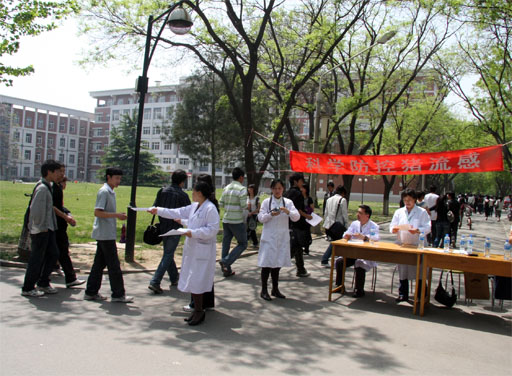 4月30日,校医院与动物科学系的八名专家组成宣传组,于世界杯官网人流密集的交叉路口设置宣传点,向来往师生员工分发宣传资料,宣传预防猪流感的相关知识,引导师生员工养成良好的卫生习惯。