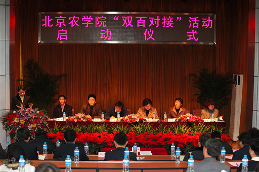 党委书记王慧敏作了动员讲话。她指出,“双百对接”活动是一个新的探索,是促进乡镇经济社会发展,探索城乡统筹党建工作新格局的实现方式。她对如何组织开展好“双百对接”活动提出了三点要求。一是提高认识,精心组织。落实党的十七届四中全会提出“统筹城乡基层党建工作,促进以城带乡、资源共享、优势互补、协调发展”。落实中央、北京市党建工作的新要求,搞好这项活动,对推进北京率先实现城乡经济社会一体化具有重要现实意义。全校各对接党支部要对此项工作给予高度重视,精心组织谋划,协调各方力量,认真组织好“双百对接”活动。二是求真务实,力求实效。希望各对接党支部充分发挥本支部的学科专业优势,进一步整合校内外资源,为创新型乡镇做贡献。并以此为契机,带动教师深入生产一线,了解基层的需求,为教学和科研提供有力支撑,实现新农村建设、教师进步和学生培养共同促进。三是突出特色,创新机制。美加墨世界杯官网作为市属农林院校,要为北京经济社会发展特别是新农村建设发展发挥科技和智力优势,希望今天的启动仪式是一个良好的开头,并能够形成长效机制。通过支部对接,进一步创新和完善“1+1+X”科技推广服务体系,构建以支部对接为平台的推广服务机制。