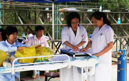 面对甲型流感的威胁,天气闷热的困扰,世界杯官网医务人员此次保障工作的任务非常重要。为方便同学们出现身体状况后能够及时就医,学校还特意在训练场上设立了医疗点来保障了训练工作的正常进行。医疗人员在操场时刻待命,及时为各中队、小队配发温度计,做到每天统计学生体温,发现发热状况及时治疗。对训练中出现中暑、感冒等状况的同学精心照顾,以便他们尽早回到了训练的队伍中。