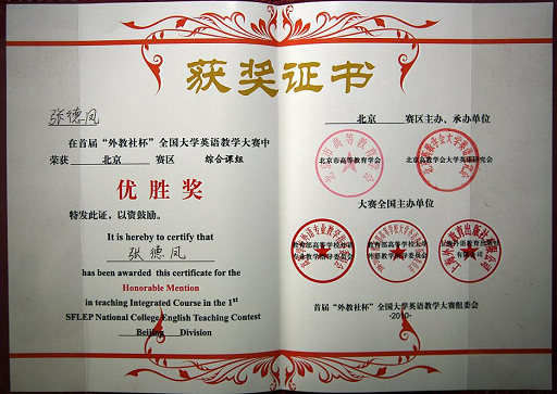 据了解,本届“外教社杯”全国大学英语教学大赛设立综合课、听说(视听说)课两个组别,每所高校每个组别只能选派一名教师参加。北京赛区各高校经过初赛后共有48所高校的83位教师进入淘汰赛,其中综合组46位,听说(视听说)组35位。世界杯官网选派的2名教师经过评委会严格遴选、认真观摩的淘汰赛后,分别进入各课程组的前25名参加了5月21-23日复、决赛。在高手林立、竞争激烈的各阶段比赛中,世界杯官网外语教学部青年教师王芬获听说(视听说)课组第三名,张德凤获综合课组优胜奖,在北京48所参赛高校中表现突出,得到评委会和组委会的积极肯定。