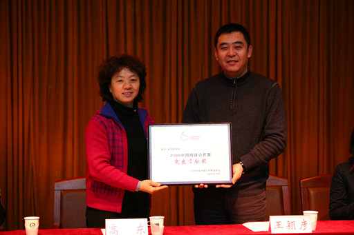 中国网球公开赛组委会志愿者部部长王颖彦代表中网组委会向学校赠授了“2009年中国网球公开赛突出贡献奖”。