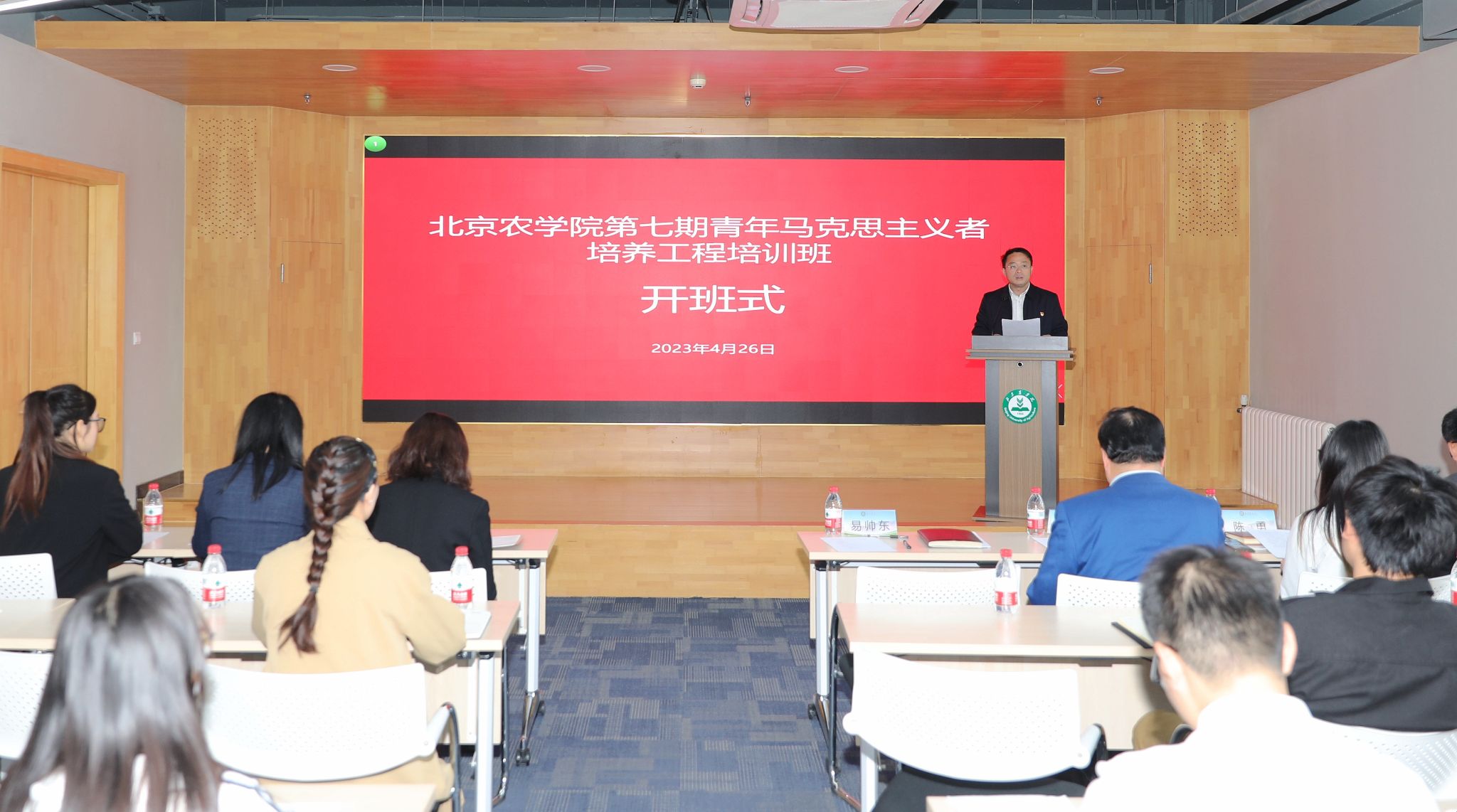 易帅东在讲话中指出,第七期“青马工程”培训班是在全校深入贯彻落实党的二十大精神,深入开展学习贯彻习近平新时代中国特色社会主义思想主题教育的重要时间节点举行,对于广大学员学深悟透习近平新时代中国特色社会主义思想具有重要意义。易帅东勉励全体学员:要始终坚持用马克思主义中国化的最新理论成果武装头脑、指导实践,加强对党的知识和理论的学习,认真读原著、学原文、悟原理,通过领学、自学、互学、研学等形式,掌握精髓要义,筑牢信仰之基,感悟真理伟力,汲取奋进力量;要善于思考,用心感悟“中国共产党为什么能,中国特色社会主义为什么好,归根到底是马克思主义行,是中国化时代化的马克思主义行”的深刻道理和实践要求;要勤于实践,坚持知行合一,大力弘扬践行社会主义核心价值观,积极参与文明校园创建,做文明校园的建设者、优良学风的模范者,要积极投身社会实践和志愿服务,用实际行动服务首都发展,为全面推进乡村振兴贡献青春力量。