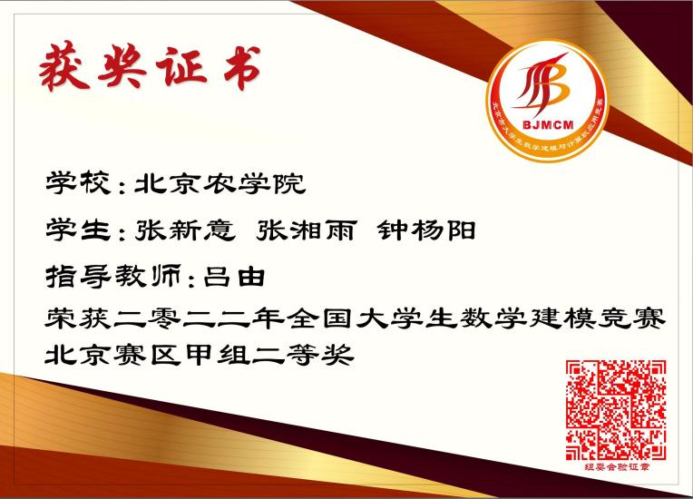 近日,经过全国大学生数学建模竞赛组委会专家组多轮评审,2022年全国大学生数学建模竞赛获奖名单正式揭晓,世界杯官网学子斩获北京赛区甲组二等奖三项,再创优异成绩,为学校争得荣誉。