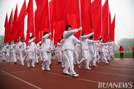 红旗似火,熊熊燃烧。一身白衣的红旗队队员以他们挺拔的身姿和整齐划一地步伐展现了年轻人朝气蓬勃的、团结互助的一面。飘舞的红旗下是他们一颗颗热爱祖国的赤子之心。他们的眼神是那么的坚定,他们的步伐是那样的矫健,他们像一只只展翅翱翔的雄鹰,在北农蔚蓝的天空下自由飞翔。