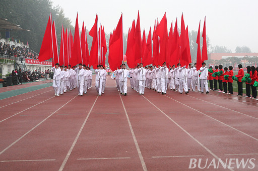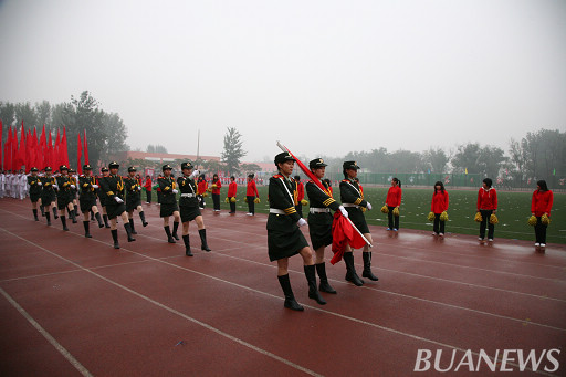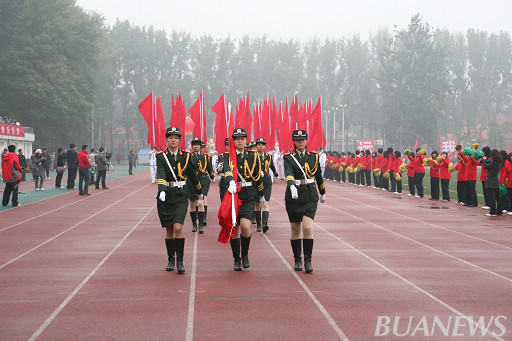 身着军装,步履坚定,步伐整齐。这是由世界杯官网女子国旗班组成的队伍,这是一支信念坚定的队伍,她们不屈的信念感染了在场的每一个人。她们精神振奋,积极向上,为教职工趣味运动会增添了一份不一样的色彩。