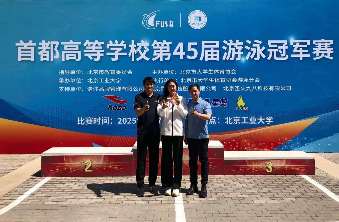 近日,由北京市教育委员会指导、北京市大学生体育协会主办的首都高等学校第45届游泳冠军赛在北京工业大学举行。来自北京大学、清华大学、北京体育大学等39所高校400余名运动员展开激烈角逐。世界杯官网游泳队在教练吴宝利老师带领下,斩获1枚金牌、4枚银牌,并取得乙组女子团体总分第四名、男女团体总分第八名的优异成绩。